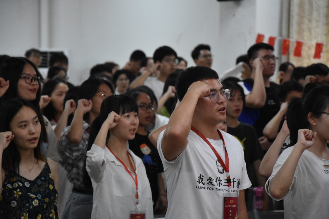 大会第六项,由督察组组长王志泰同志带领全体党员、预备党员以及积极分子重温誓词:“我承诺,遵守公司制度,严守班级纪律,按时上课,脚踏实地,营造良好的课堂氛围,克难奋进,互相帮助,争当学风引领的标兵!”全体成员高举右拳,铿锵有力地宣下誓词。