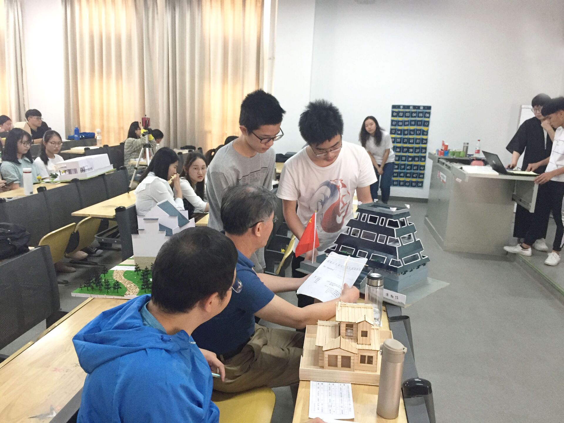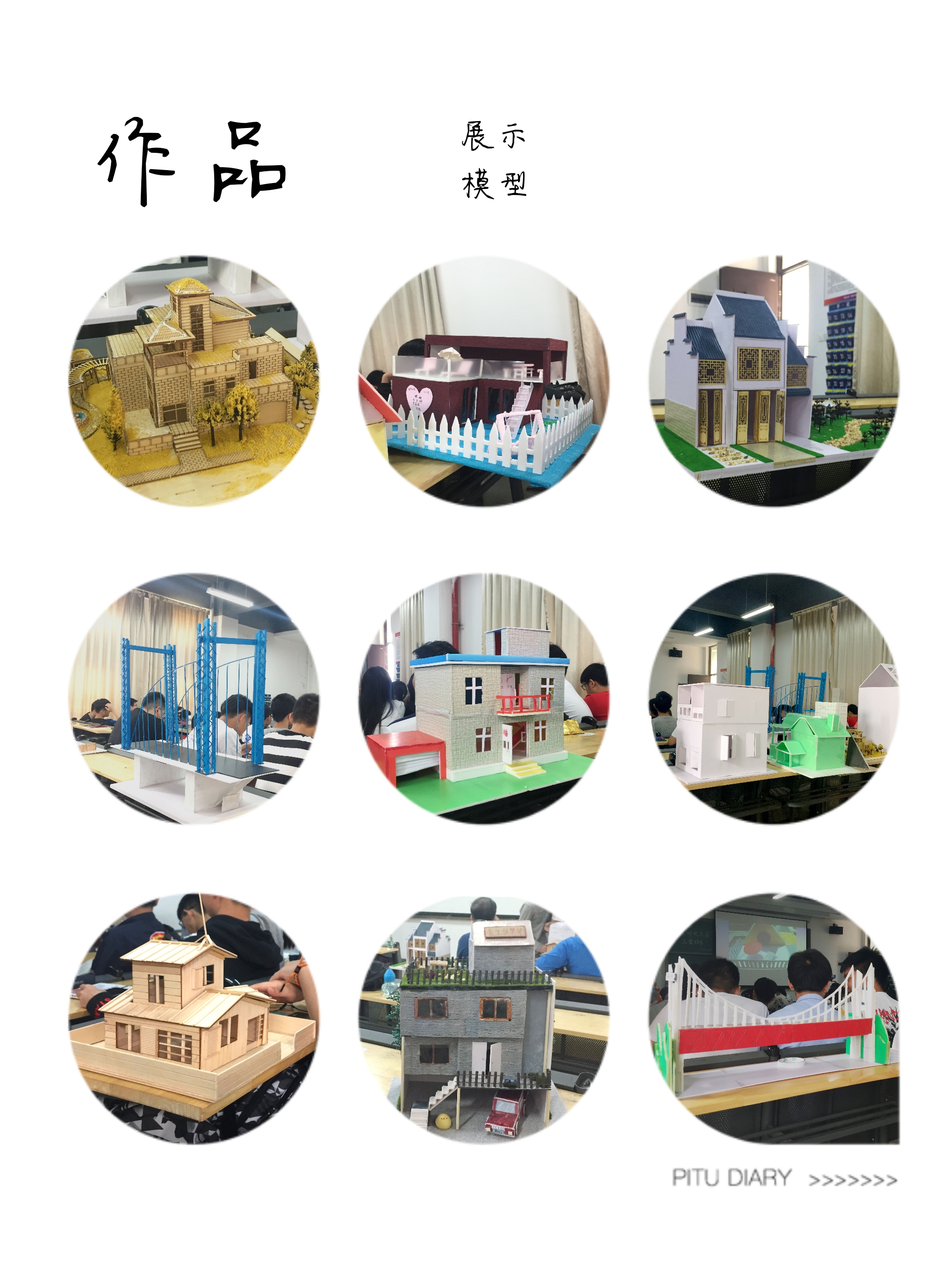 经过各个小组的精彩展示。最终有六个寝室获得了各位评委老师的更高肯定。分别是6-256寝室的“中国馆”:该模型的设计原型是以上海世博会的著名建筑——中国馆为参照物而设计的。该模型小巧玲珑,做工精细,结构细腻匀称,简直就是上海世博会“中国馆”的缩小版。归园田居:该模型采用中式古典建筑风格,细节处理细腻,特别是门窗,重视古典风格,高贵典雅。整体的结构完整,有鹅卵石小路,有草坪,有小树。舒适和谐,自由唯美。湖北省博物馆:该模型以简约又不失细腻,主要以黑白灰三种主色调,下面以架空层底座城楼,隔间为主要荷载,上半部分不一样的矩格形式,为“湖北省博物馆”渲染了宏大,庄严的视觉体验。不一样的作品不一样的特色。在同学们日日夜夜兴趣盎然的情况下,涌现了一大批优秀的建筑模型。