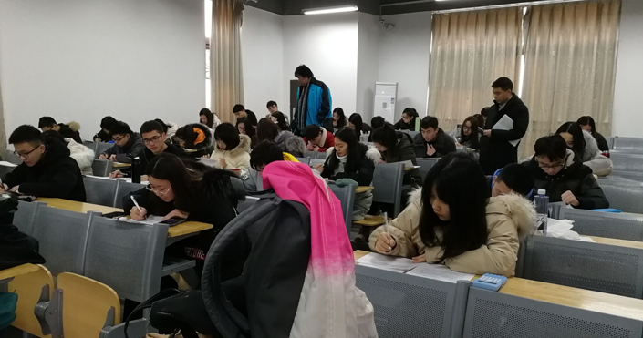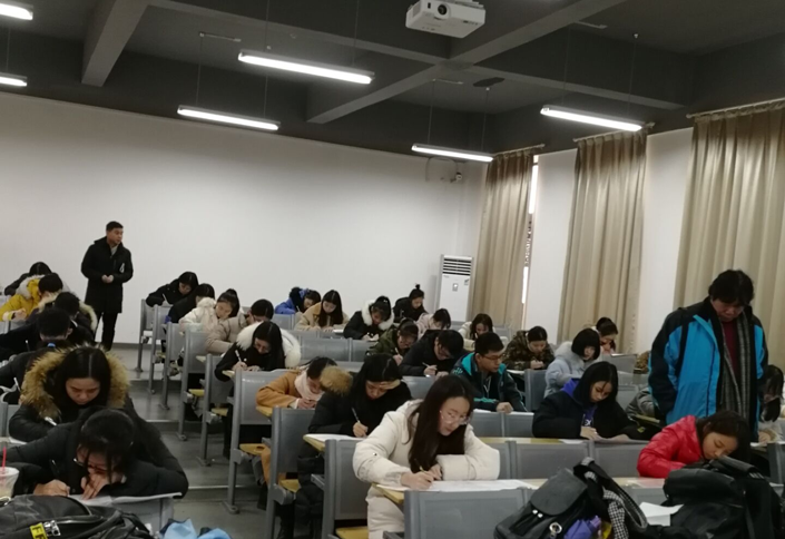 2019年元月4日,管理公司经理柳瑞禹教授及书记孙建伟等亲临考试现场巡考,查看公司期末考试情况。下图为考试现场: