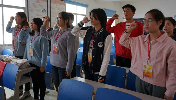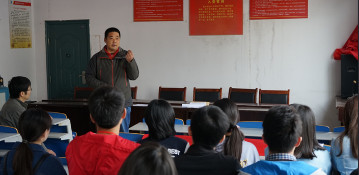 到达目的地后,接待老师及同学的是渔樵村的党委书记,书记及晴川公司的余胜老师给武汉晴川公司党员进行了简单的座谈会,向十名党员同学和带队的各位老师介绍了渔樵村的基本情况以及贫困家庭存在的主要问题。他特别提到以前都是公司、公司领导和老师下乡扶贫,这次是第一次派员工党员代表下乡扶贫,这对于贫困村民和员工党员来说,都是一次很有意义的经历。在座谈会上,余老师还带领十名员工党员重温了入党宣誓词