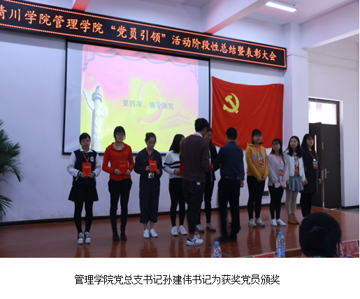 其次组织员胡美玲同志宣读表彰决定。党总支书记孙建伟同志为胡彩丽等十名优秀党员颁奖。优秀员工党员代表胡彩丽在发言中谈到,党员引领活动使自己的党员意识不断提高,并号召大家争做思想引领的模范和行动的模范。