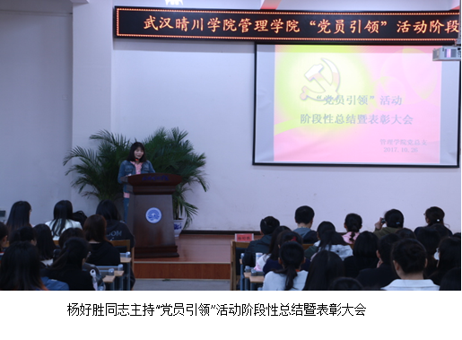 本网讯(通讯员 王思思)为喜迎党的十九大胜利召开,深入推进 “党员引领”活动,2017年10月26日中午12:10,千亿球友会管理公司党总支在综二学术报告厅隆重举行“党员引领”活动阶段性总结暨表彰大会。管理公司党总支书记、副经理孙建伟同志,组织员兼分团委书记胡美玲同志、员工党支部书记以及公司全体员工党员、预备党员、入党积极分子出席大会。会议由员工党支部书记杨好胜同志主持。