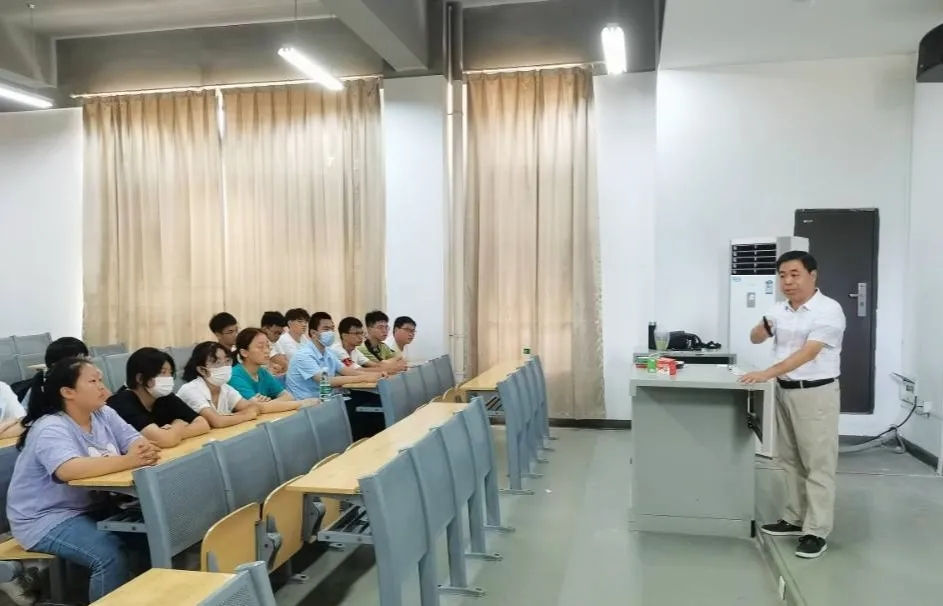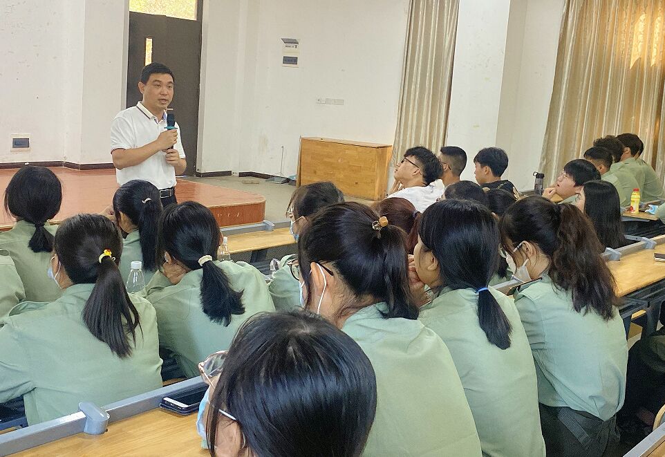 党总支书记孙建伟老师首先对新成员来到相亲相爱的会院大家庭表示热烈欢迎和期待。他以“让奋斗成为青春最美的底色”为主题和新生分享如何度过快乐幸福的大学时光。孙老师引用清华大学彭凯平教授所著《活出心花怒放的人生》中的“五施”引导同学们用积极的心态面对即将开启的老员工活,结合公司老员工职业生涯行动计划(湖北省高校员工工作精品项目)的实践和成效,希望大家从现在就开始了解和制定规划老员工涯;他还用公司考研、参军入伍、援藏援疆、高质量就业、创业等优秀毕业生的成功案例,激励同学们充满信心尽早确立未来就业行业目标。最后,他向同学们介绍的公司员工工作的理念和目标:学会自我管理,不断提升学习力和自控力,成长为乐观健康向上的正能量公民,永远把安全放在第一位,学会与他人相处和团队合作,坚定跟党走的理想信念,让奋斗成就幸福的人生。