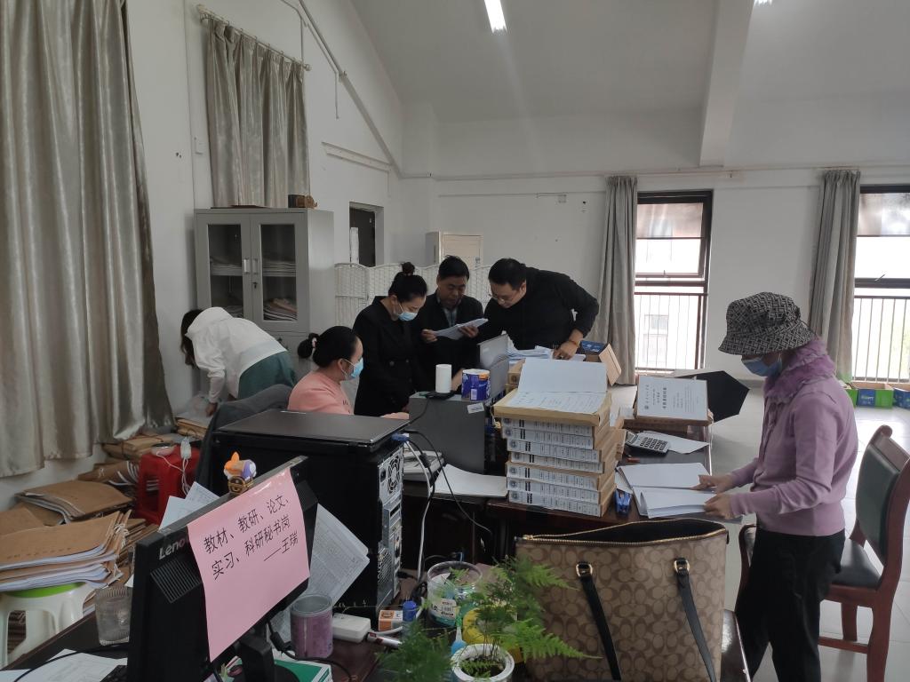 2022年4月27日(周三)下午13:30全院教师首先在综二317会议室集中开会,欧阳经理再次强调了本科合格评估的意义和重要性,对本次结对互查整改提出了要求。由于前二次的整改仅限于对被抽查课程的老师要求其整改,这次自查整改则是全体教师参加,采用二个教师结对互查的方式,对照公司教学资料归档要求自查整改,责任到人。会议结束后,14:30全体教师在系主任的带领下到综二510公司办公室对教学档案、课程考核档案进行互查整改工作。下图为自查整改现场。