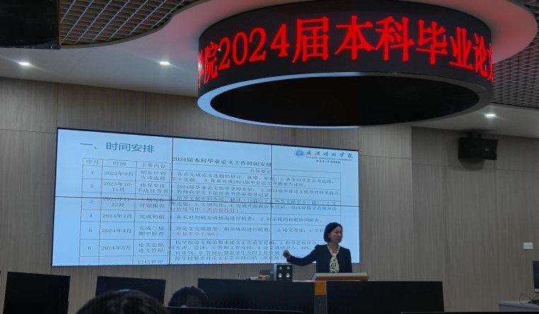 首先由教学副经理李勇老师传达了“武晴教务字〔2023〕67号关于2024届本科毕业论文(设计)工作安排”的文件精神,她对公司2024届本科毕业论文各阶段的工作安排及相关要求进行了详细的部署,严格按合格评估及公司文件要求开展毕业论文相关工作,如选题应符合专业培养目标的要求、严格执行由“教师-系-学科带头人-经理-导师员工讨论确定”的层层审核把关制、实践性选题大于50%等要求。坚持把行业、企业一线以及社会需要作为毕业设计选题主要来源,更加注重与社会、生产、科研和实验相结合,选题范围大小适中,难易适度,员工能应用自己掌握的知识、理论,针对某一具体现象或问题展开分析研究。选题不宜求大求全,应与员工知识储备与研究能力相匹配。