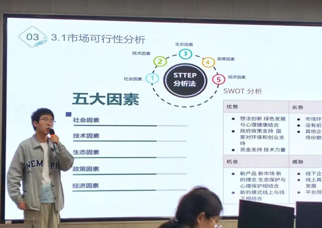 本次挑战杯拟设科技创新和未来产业、乡村振兴和农业农村现代化、生态文明建设和绿色低碳发展、社会治理和公共服务4个组别,且共有16个队伍积极参与。同时,特邀球友会的团总支书记郭庆老师,辅导员刘琪老师,孙雄进老师担任评委,对参赛作品进行了提问与评价。