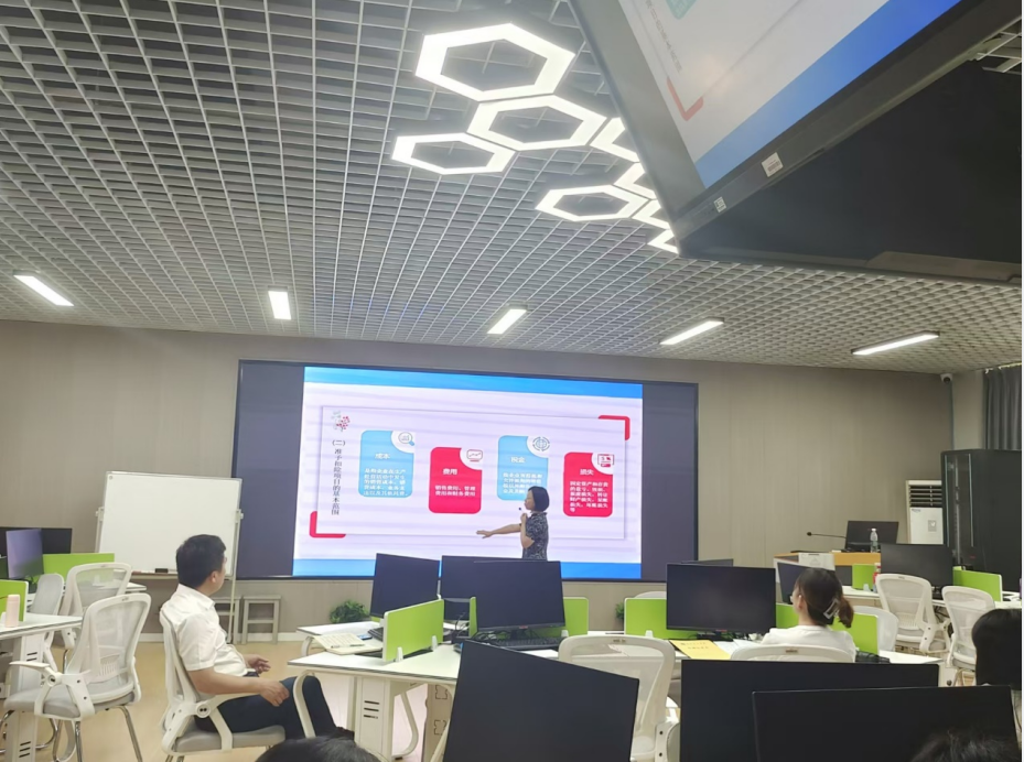 李超老师磨课的课程也是《税法》,重点讲解了税法认知内容,即税收的含义、税收的作用等。李超老师在授课前通过案例引入,在课中结合实际讲解相关知识点,并通过提问及课堂讨论等方式与员工互动,牢牢抓住员工关注点。在整个授课过程中李超老师巧妙将思政元素融入其中,大幅度提升课堂的教育意义。