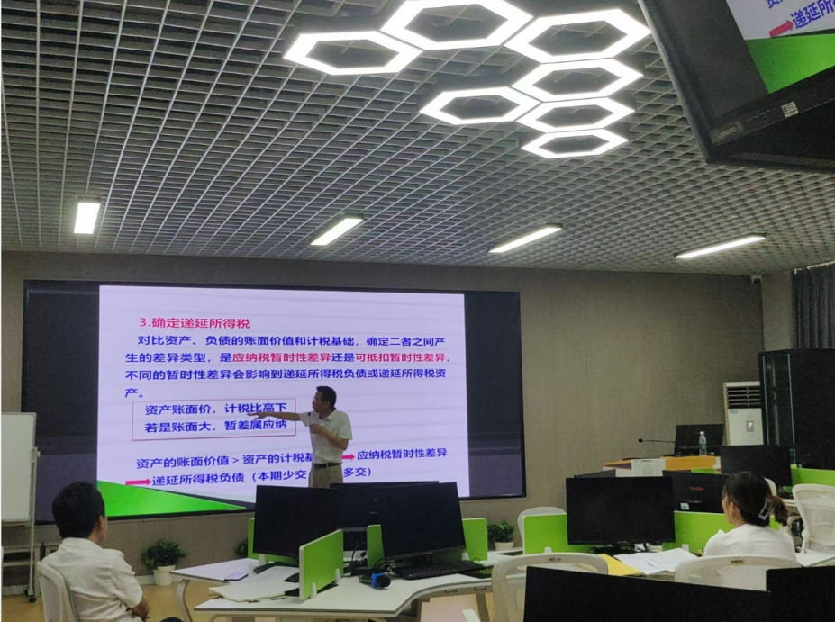 陈鸿琦老师本次磨课的课程为《中级财务会计》,从会计的角度讲解了所得税相关内容,重点介绍了资产负债表债务法的账务处理程序,即资产与负债的计税基础、所得税的确认与计量等。陈老师采用问题导入的方式引出本次授课内容,上课富有激情,讲课时语调抑扬顿挫,最大程度的吸引员工的注意力。并且运用口诀将知识点串联使得知识通俗易懂。