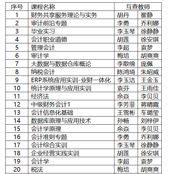 在本次自查工作中,公司总共有101门课程参与了自查,参与教师人数为69人;会计系共有35人参加了此项工作,自查课程数量为38门;财管系共22人参加了此项工作,自查课程数量为22门;工管系共有12人参加了此项工作,自查课程数量为41门。做到了全员参与,课程基本全面覆盖,最大程度提高本次专项检查的工作质量。