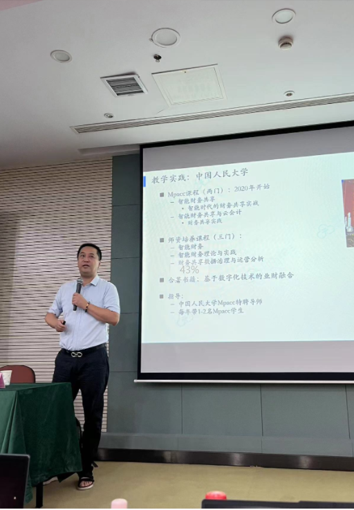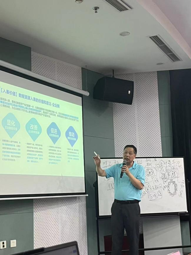 远行科技的徐凯副总经理,从企业数字化转型的角度,为教师们分析智能财务的战略布局和实施策略。他结合企业数据资产入表的问题,讨论数据资产的确认、计量和报告等方面的知识,帮助教师们把握数字化转型的脉络。