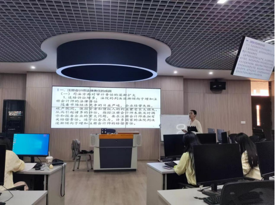 接着,余欣老师介绍了《审计学》的课程设计,通过趣味案例的引入,引导员工理解审计目标的含义和基本内容,并着重强调磨课章节的能力目标,即为被审计单位提供有价值的见解和建议,整个讲授过程语言丰富生动、案例切入自然,教学目标的实现过程十分顺畅,