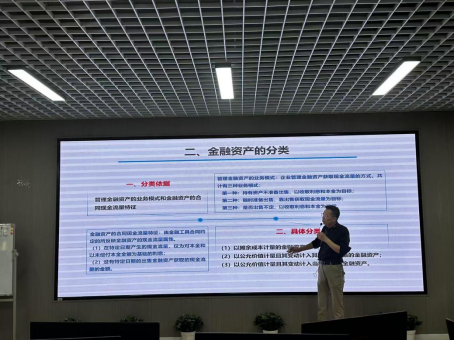 第三个上台展示的是拥有丰富教学经验,深受员工爱戴的陈鸿琦老师,陈老师讲解了《中级财务会计》中的金融资产,详细解读了金融资产的定义以及分类,对金融资产的三种分类进行深入剖析。将课本上晦涩难懂的定义变得简单易懂。陈鸿琦老师的课堂得到评委的一致好评,评委们认为课堂教学内容逻辑性强,课件美观且重点突出。但缺乏课堂思政的内容,建议后期增加。