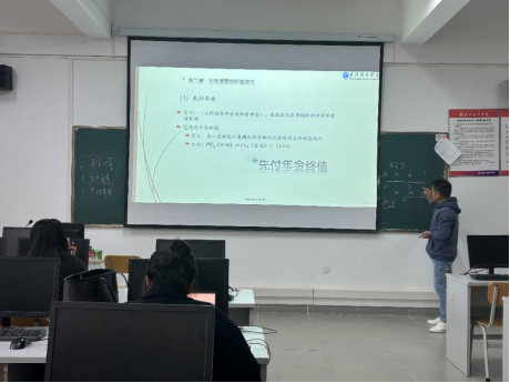 在304教室,张琴老师以其充满活力的教学风格和深入浅出的讲解,为在场的师生呈现了一堂生动的管理学课程。王珊老师则以其亲切而富有感染力的教学姿态,引导员工深入理解回归分析。夏雨老师以其扎实的专业知识和清晰的逻辑,为员工讲解了先付年金终值。三位老师都以清晰的课堂结构和内容,充分展现了我系教师的专业素养和教学热情。