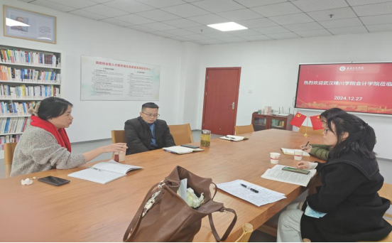 2024年12月27日,在李散绵老师的带领下,本校球友会管理会计课程组一行前往武汉工商公司会计系进行调研。武汉工商公司会计系热情接待了调研团队,系主任管威、朱逢念、刘少田等领导出席了此次调研活动。调研会上,管主任首先对李散绵老师一行表示热烈欢迎,并详细介绍了武汉工商公司会计系人才构成及专业建设情况: