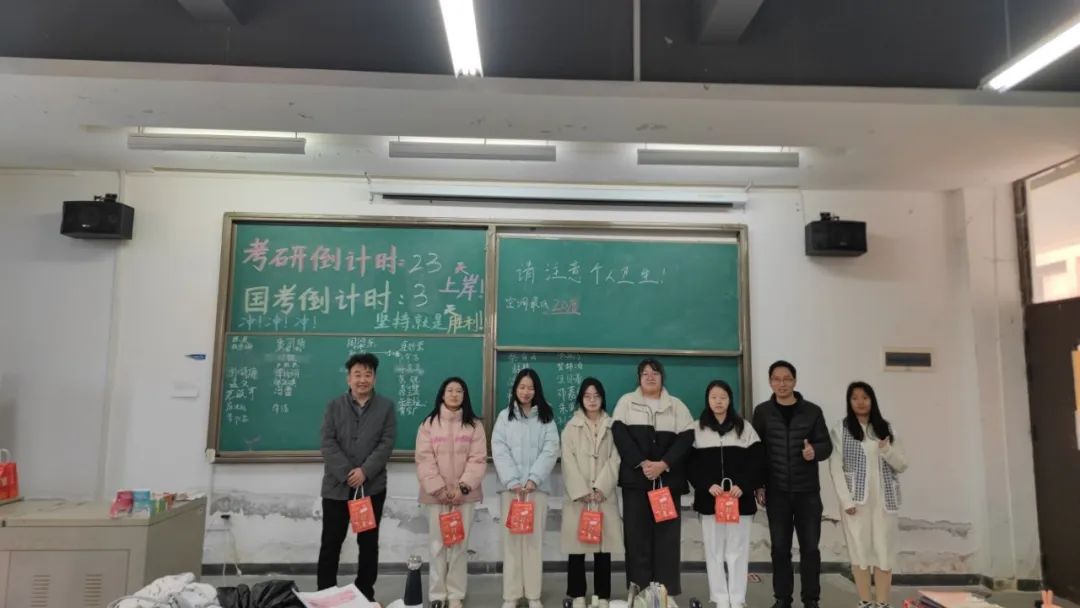 在这个充满希望与挑战的季节里,每一位怀揣梦想、勇攀知识高峰的考研、考公学子都是公司最宝贵的财富。为了表达公司对同学们辛勤付出的认可与深切关怀。11月27日上午10时,公司党总支书记李勇、团总支书记郭庆以及辅导员张佳爱老师亲临自习室,开展了一场温暖人心的慰问活动,为即将踏上征途的学子们加油鼓劲,送上最真挚的祝福与实用的慰问品。