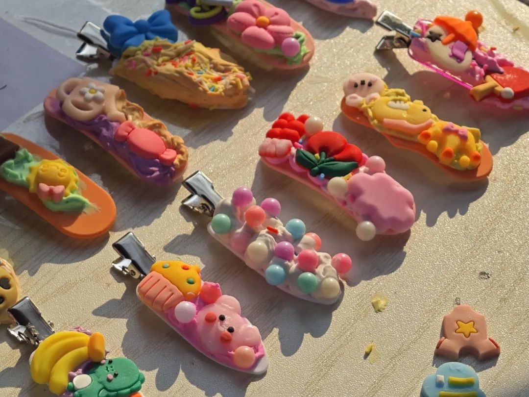 在妇女节的温馨氛围里,奶油胶与发卡相遇,开启一场梦幻的DIY之旅。挤下的奶油胶,似春日初融的甜软云朵,轻盈地附着在发卡上。缤纷糖珠、精巧小装饰,宛如洒落的星辰与初绽的繁花,点缀其间。指尖轻舞,创意在时光里流淌,每一枚发卡都凝聚着独属于自己的浪漫,成为节日里最温柔的纪念。