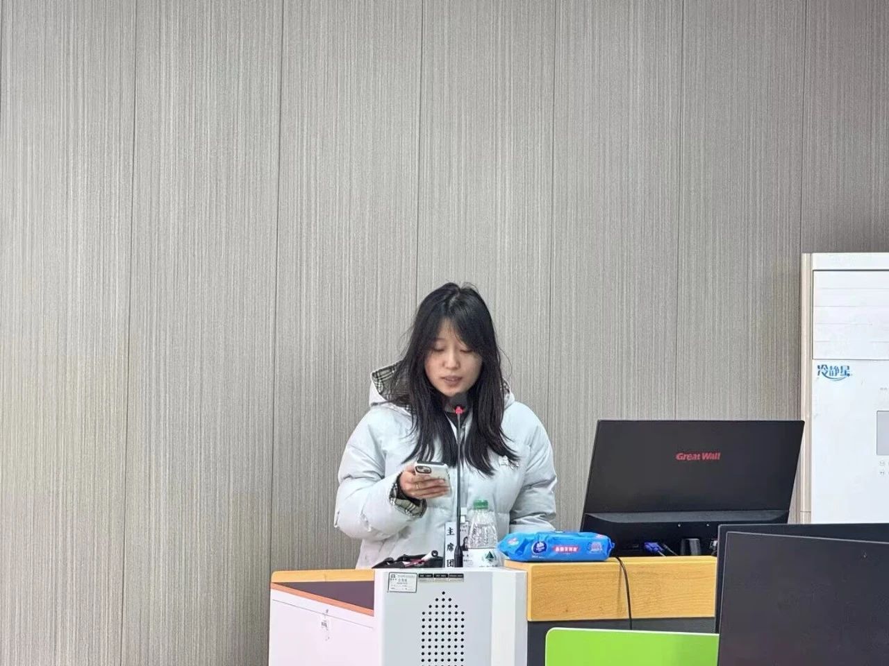 然后,团总支副书记徐文希对于请假和值班考勤提出明确的规范化要求,表示以后会定期公开值班考勤的记录。