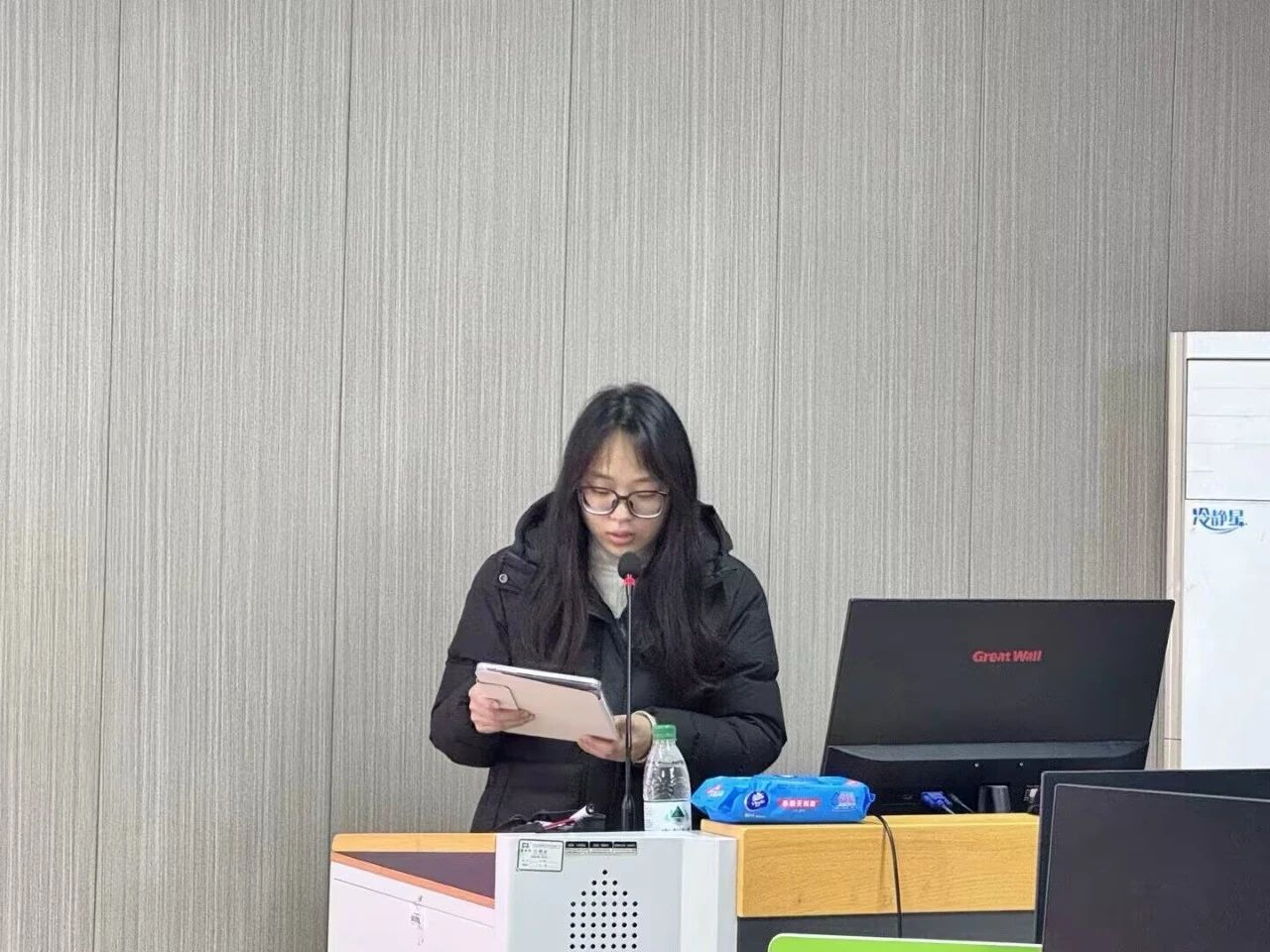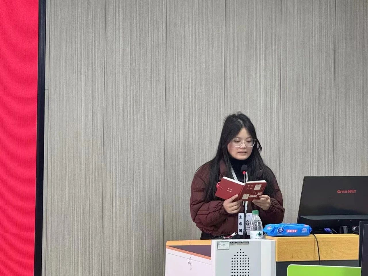 其次,团总支副主席郭子怡提出要加强早操落实,有助于提高同学们的身心健康,并且呼吁员工会成员参与活动,展现员工会成员的新风貌。她希望员工会成员在新的学期依旧可以保持以礼待人的好习惯。