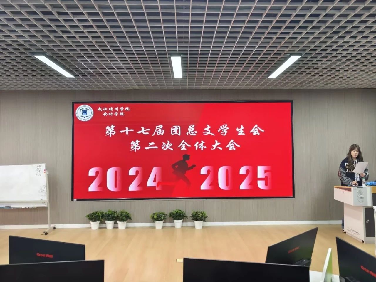 首先,员工会主席伍智聪进行学期总体规划阐述,以 “凝聚共识、务实创新、高效执行” 为核心,全面梳理工作。他指出,上一学年员工会在各项工作中成绩斐然。同时,他也深入剖析现存不足,提出以围绕要强化部门协同,把控工作细节,助力干事成长,提高活动质量与满意度,进一步贯彻落实 “全心全意为同学服务” 的宗旨。