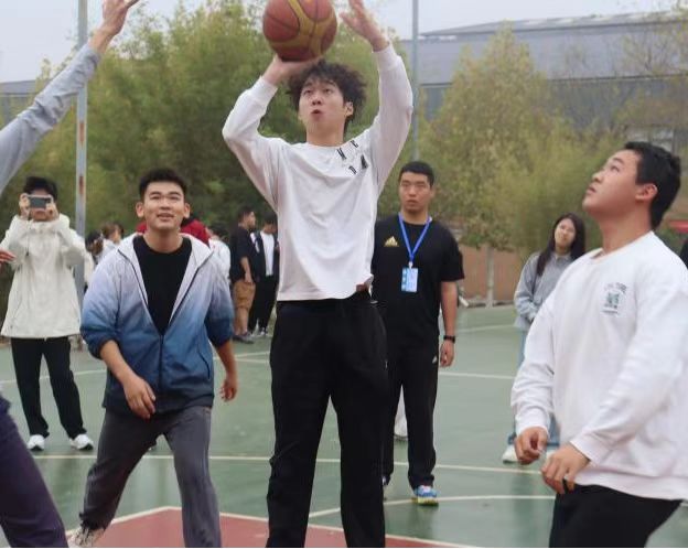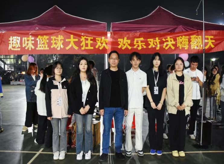 为丰富员工的校园生活,弘扬体育精神,促进员工身心健康、全面发展。球友会于2024年11月15日至16日,在篮球场上召开第一届趣味篮球赛。团总支书记郭庆老师、辅导员高梦瑶老师等到场边观看比赛。篮球赛的哨声已经吹响,同学们的步伐已经迈大,比赛正式开始。