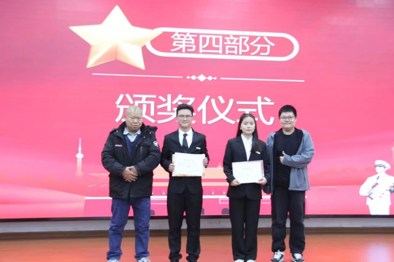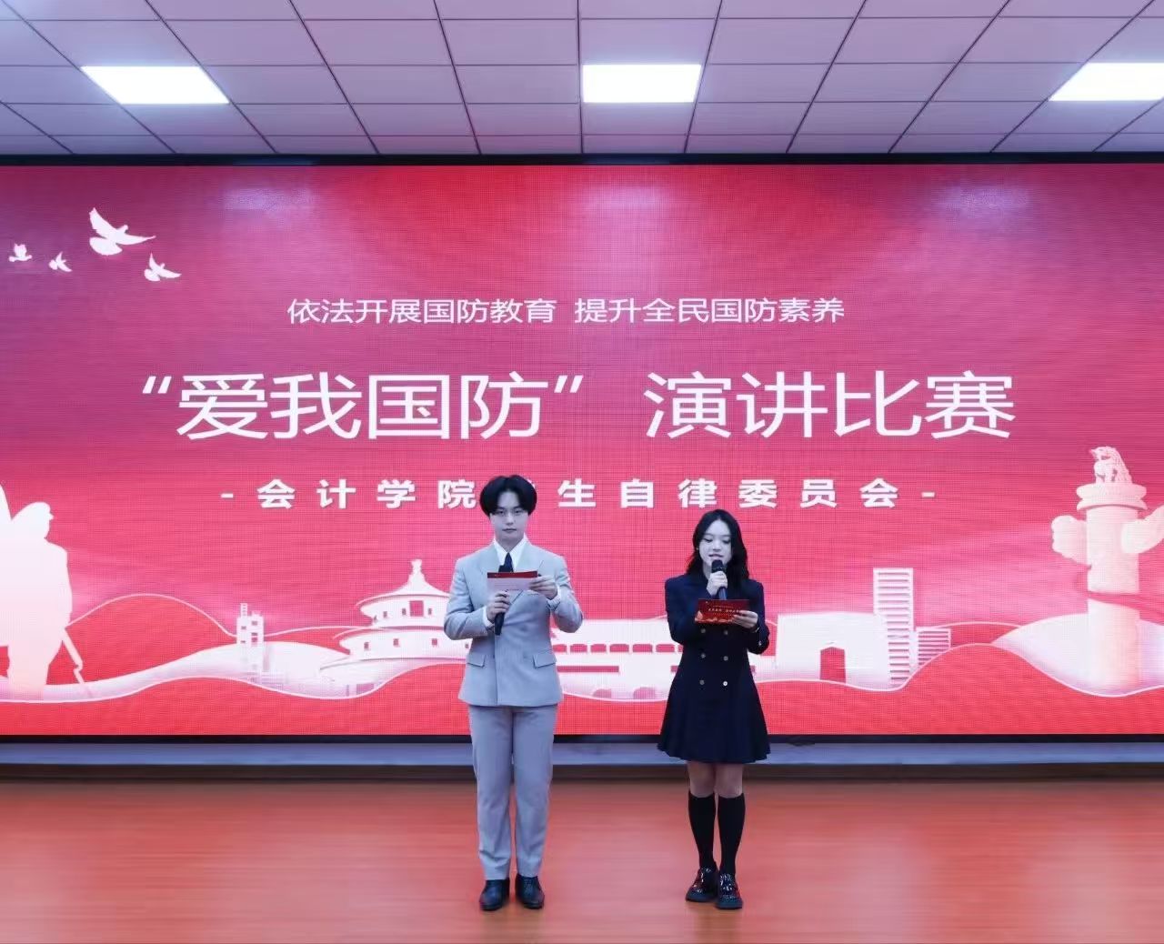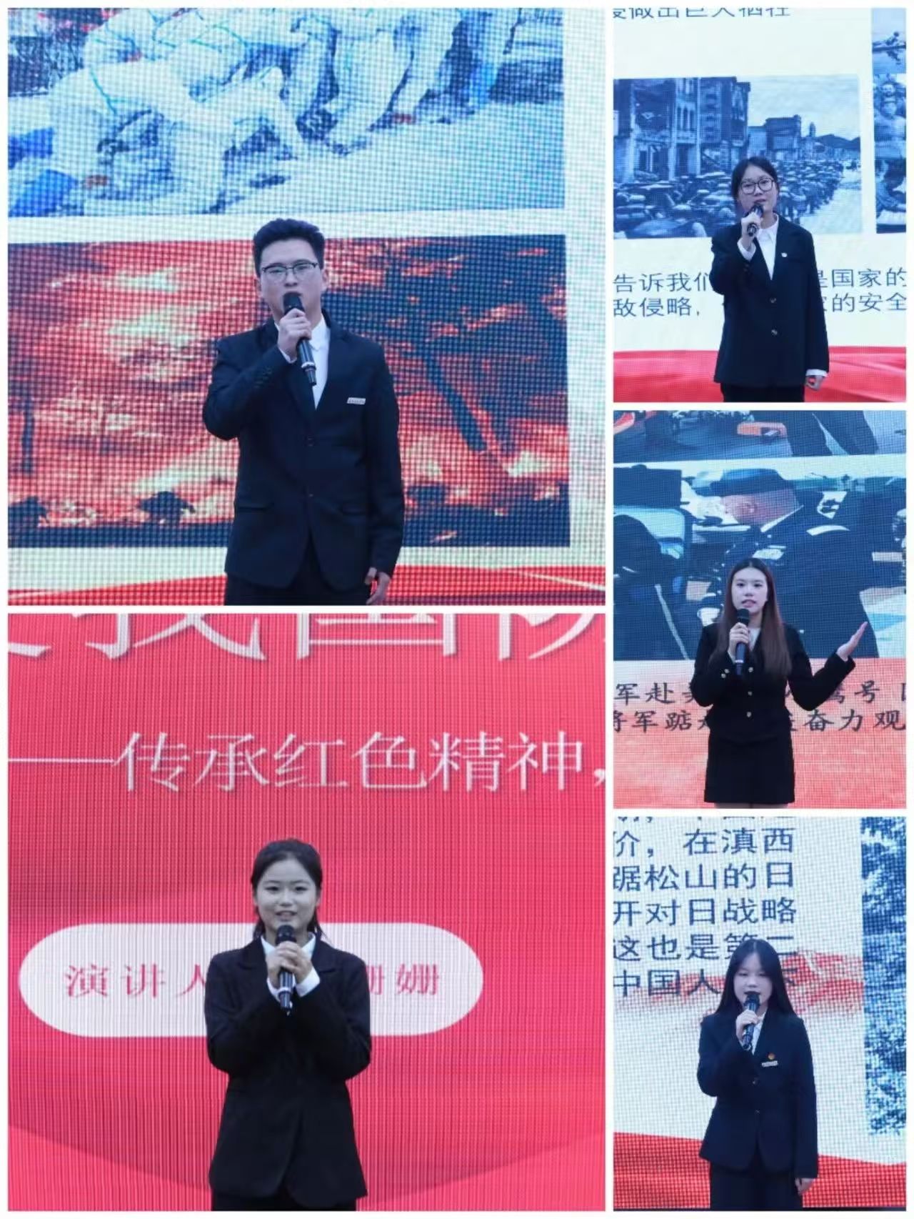会计2404班王晨珂带来的《以炽热之青春,捍盛世之中华》,讲述历史先辈英勇事迹,当今坚守在岗奉献者;从战争硝烟映射现代科技强军重要性,表明壮大国防力量的必要性。