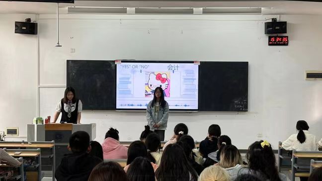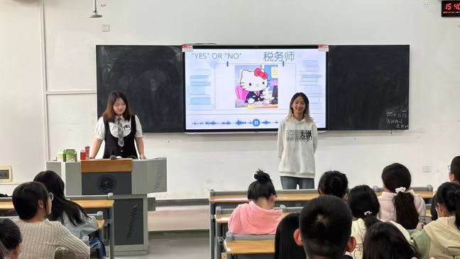 接着,王郭珺瑶学姐巧妙地设计了一款趣味小游戏,通过游戏的形式让同学们对会计学专业相关的职业有了更深入的了解。游戏过程是挑战者背对多媒体屏幕,他们通过提问并依据同学们的回应来猜测屏幕上于专业相关的职业。这一环节不仅让同学们对会计行业的不同职业有了更直观的认识,也为他们的职业生涯规划提供了有价值的参考。