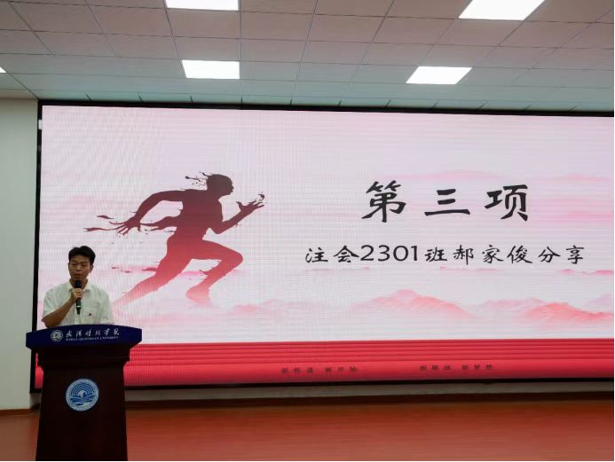 接着,新生代表注会2301班的郝家俊同学分享了与党员学长段雪鹏的温馨故事。他提到,党员学长的帮助让他迅速适应了校园生活。段学长的冬日问候给了他家的温暖,而学长自身的榜样作用也激励着他积极投身于员工会的工作,立志成为一名服务同学的好学长。
