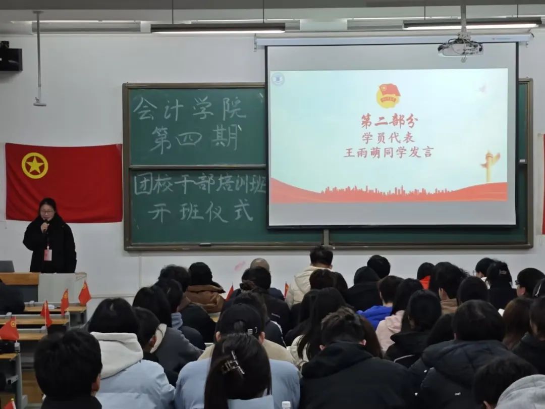随后,学员代表王雨萌同学在发言中指出,团校是提升青年思想政治素质、锤炼意志品质的关键阵地。通过团校培训,学员们能够深入领会党的理论和团的方针政策,增强责任感与使命感,更好地为新时代青年工作添砖加瓦。其次,她还呼吁员工干部要端正态度、明确目标,重视学习与交流,将所学知识运用到服务同学中。最后,王雨萌同学表达了对本次团校干部培训班的美好祝愿,并激励学员以饱满热情和坚定信念迎接培训中的挑战!