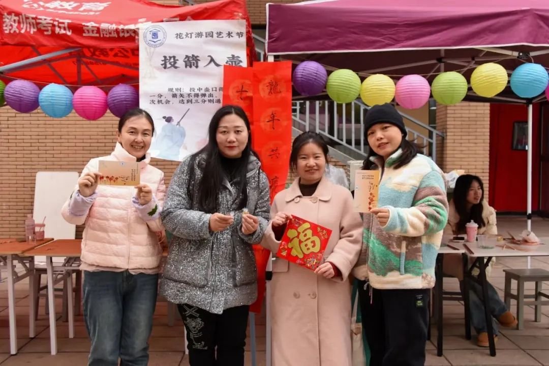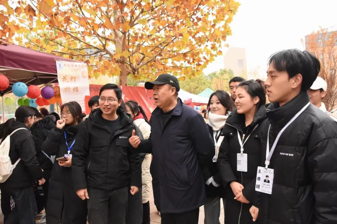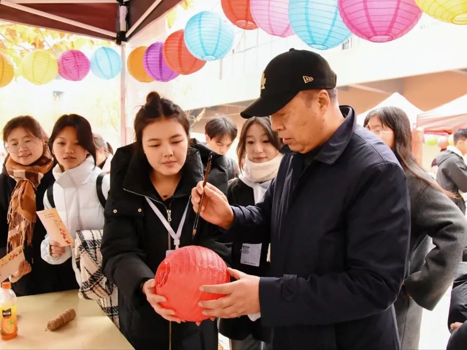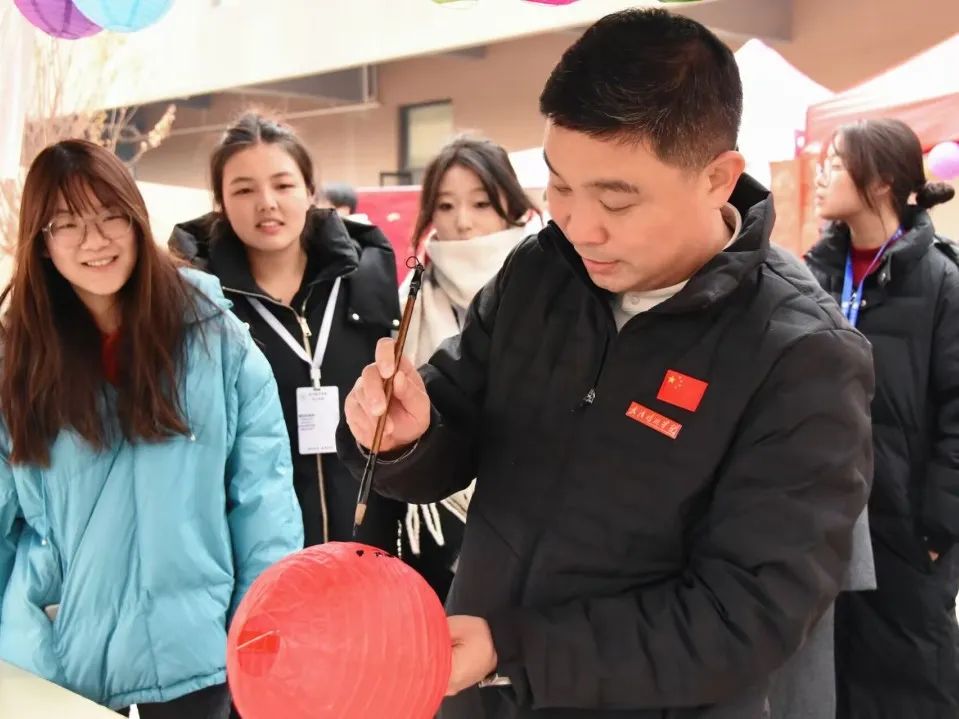 张克华副董事长也来到了活动现场,与大家一同感受花灯游园艺术节的乐趣。他在“花灯祈愿”游戏区,提笔写下“福”字,为艺术节添上一抹充满文化底蕴的亮色。张克华副董事长还参加了“剑指心间”的游戏,一番体验后,他表示,此次的活动很有意义,让每个人表达出了内心的期许,感受到了传统游戏的乐趣。此外,他还参观了同学们亲手制作的花灯,尤其注意到寓意“预祝考研学子蟾宫折桂”的花灯作品,表示这份花灯的寓意很好,当下毕业生考研是公司的重中之重,一定要为员工们做好保驾护航的工作,同时祝愿球友会的活动越办越好。最后,张克华副董事长与在场活动负责人员合影留念。