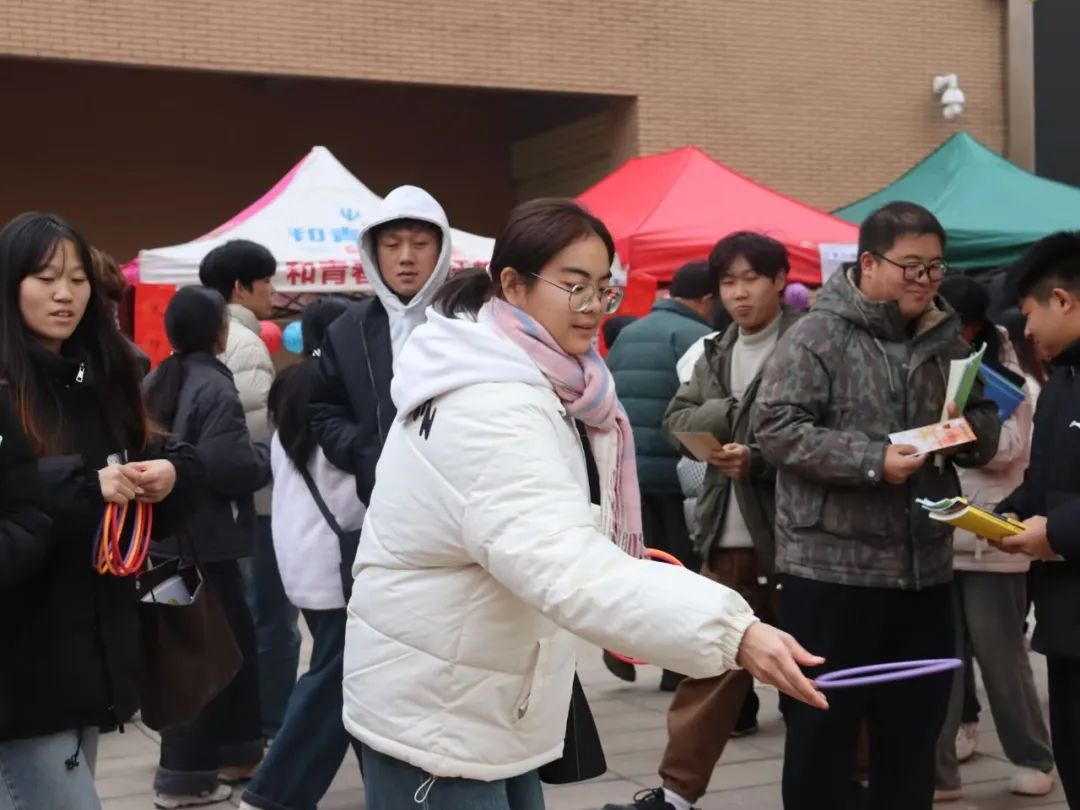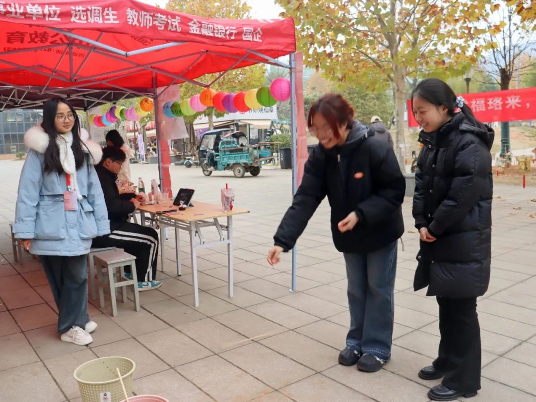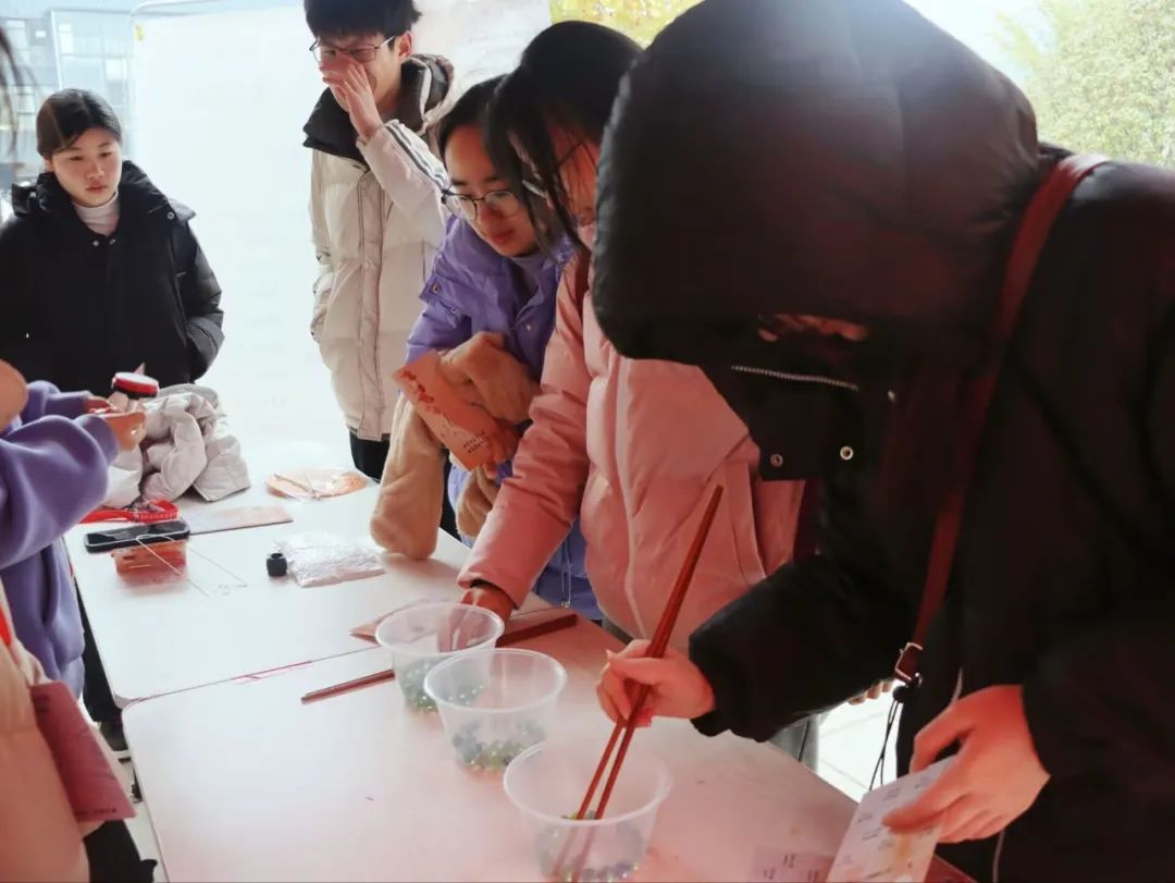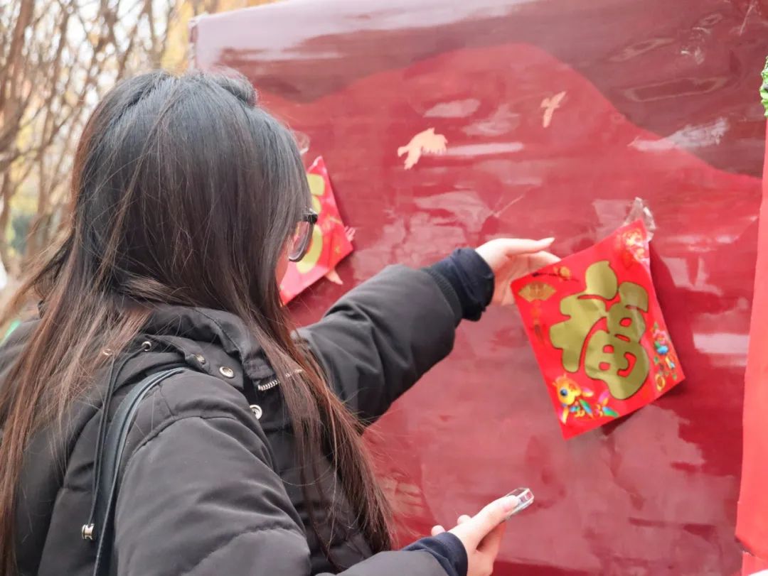 在游戏体验中,学工处处长孙建伟老师在“花灯祈愿”游戏区,握笔题下“以生为本,双向奔赴”,简单的话语却可见孙建伟老师对球友会的独特情怀,更可见他对于晴川学子的重视与关心。此外,孙建伟老师还参加了“蒙眼摸福”的游戏,“福”寓意着幸福、福气、福运,相信这寓意也和孙建伟老师对晴川学子的美好祝愿不谋而合。一番体验后,孙建伟老师对本次活动表示了认同与赞扬。老师们在同学们的陪同下一起体验了种种独具匠心的游戏项目,都表现出高度的热情。