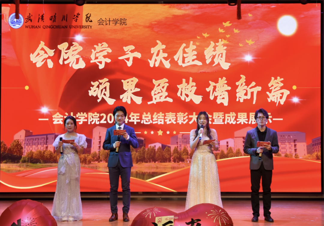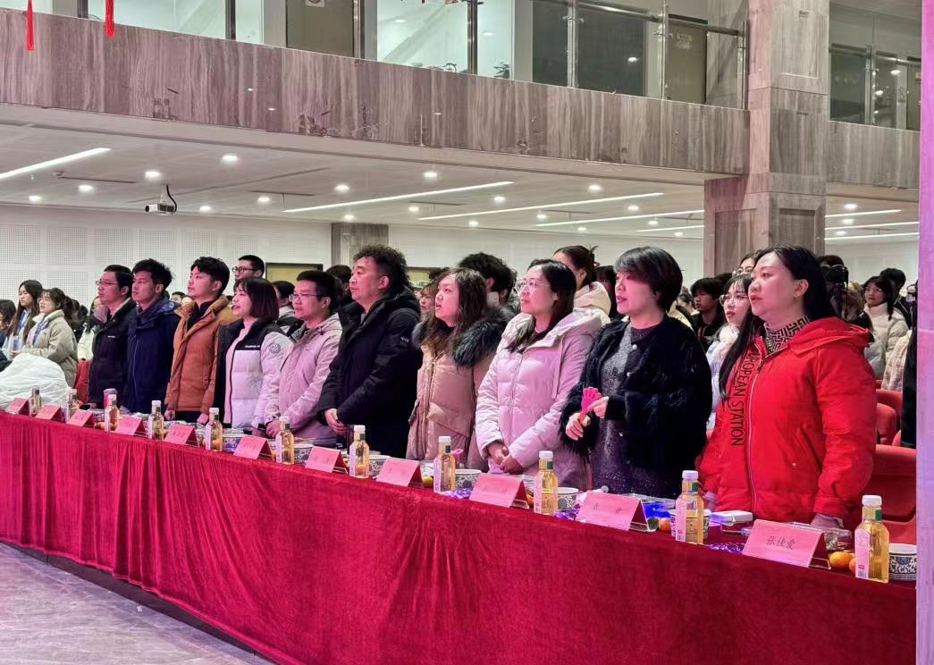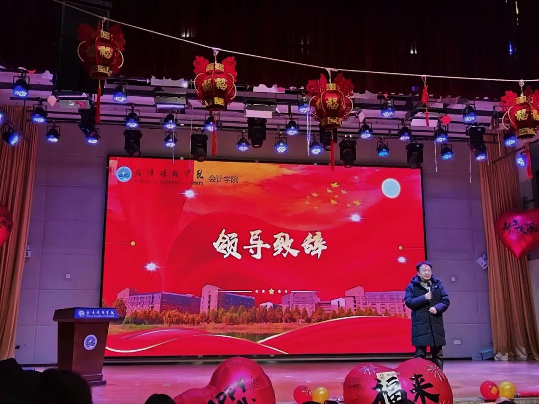 公司党总支书记李勇老师、球友会副经理胡丹老师、校办公室主任梅高强老师、经理助理王珊老师、传媒艺术公司团总支书记吴杨老师、晴川艺术团团长刘婧老师、球友会团总支书记郭庆老师、第一党支部书记韩东老师、第二党支部书记戴君老师、第三党支部书记韩伟老师、辅导员徐梓凯老师、彭梦萍老师以及师生代表共500余人欢聚一堂,回首2024,展望2025。