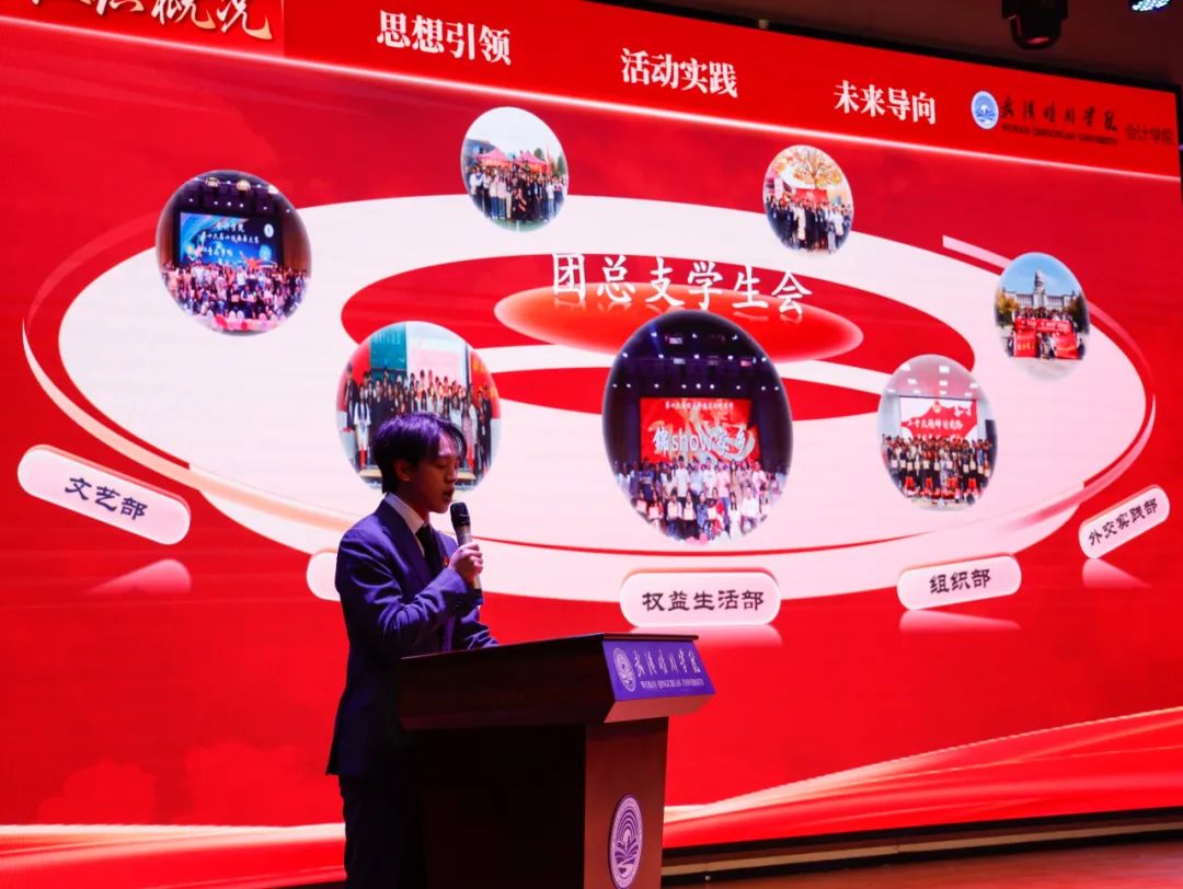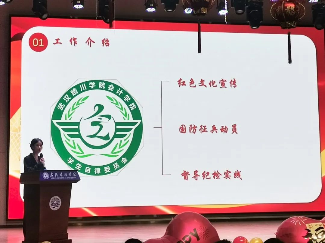 随着欢快音乐响起,员工会活力四射的表演惊艳亮相,让在场观众充分领略到青春的蓬勃朝气。团总支员工会主席伍智聪深情地讲述着各个部门的活动精彩瞬间:体育部操办的运动会,散发出青春的热血;文艺部的“十佳歌舞大赛”演绎着艺术的魅力;“三七女神节”时,权益生活部温情守护,让关怀如春风拂面;网宣部打造的花灯游园艺术节,开启古韵与新潮碰撞;外交实践部“锦‘show’家乡”,畅述了不同地区的家乡底蕴;学习部“翰林杯”辩论赛,言辞交锋、思想激荡;组织部的团日活动评选,汇聚奋进力量。无不尽现晴川学子的丰富生活和积极向上的激情。