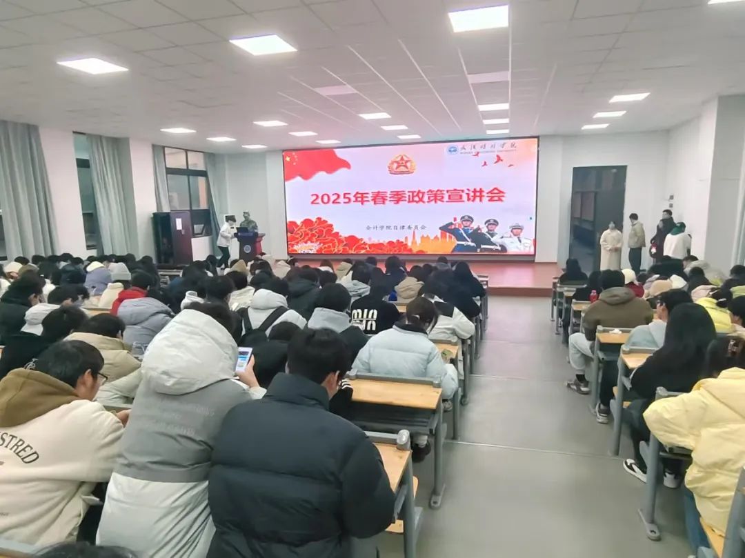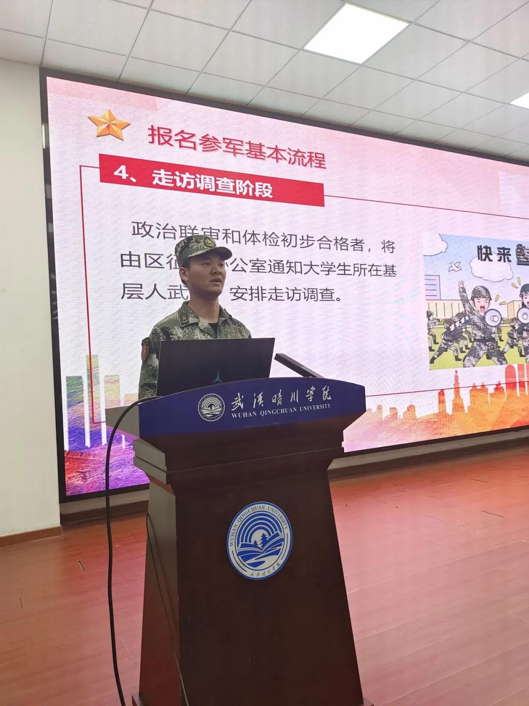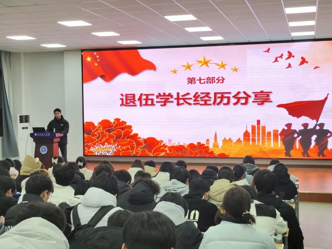 在会上,由退伍军人、自律委员会征兵动员部部长张伟峰同详细介绍了国家征兵政策、征兵条件、征兵流程、士兵待遇及退役安置等,使学子们对军旅生活有了更直观的认识。