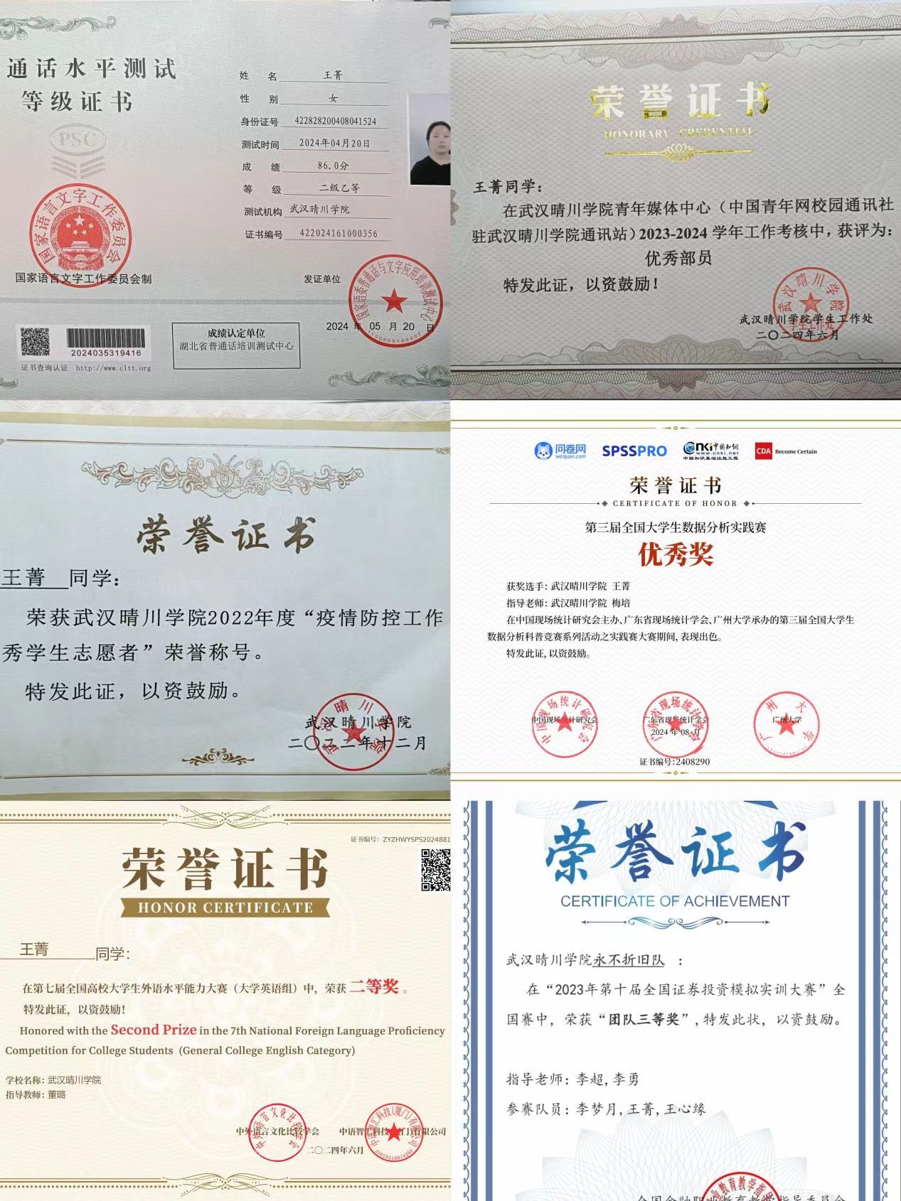 大学之旅异彩纷呈,在这片海洋中航行,王菁同学已经留下了深深的足迹。回顾过往,她以不懈的努力,取得了丰硕的成果。如今,站在新的起点上,愿王菁同学在新的征途上,再接再厉,以坚定的信念和不懈的毅力,勇往直前。