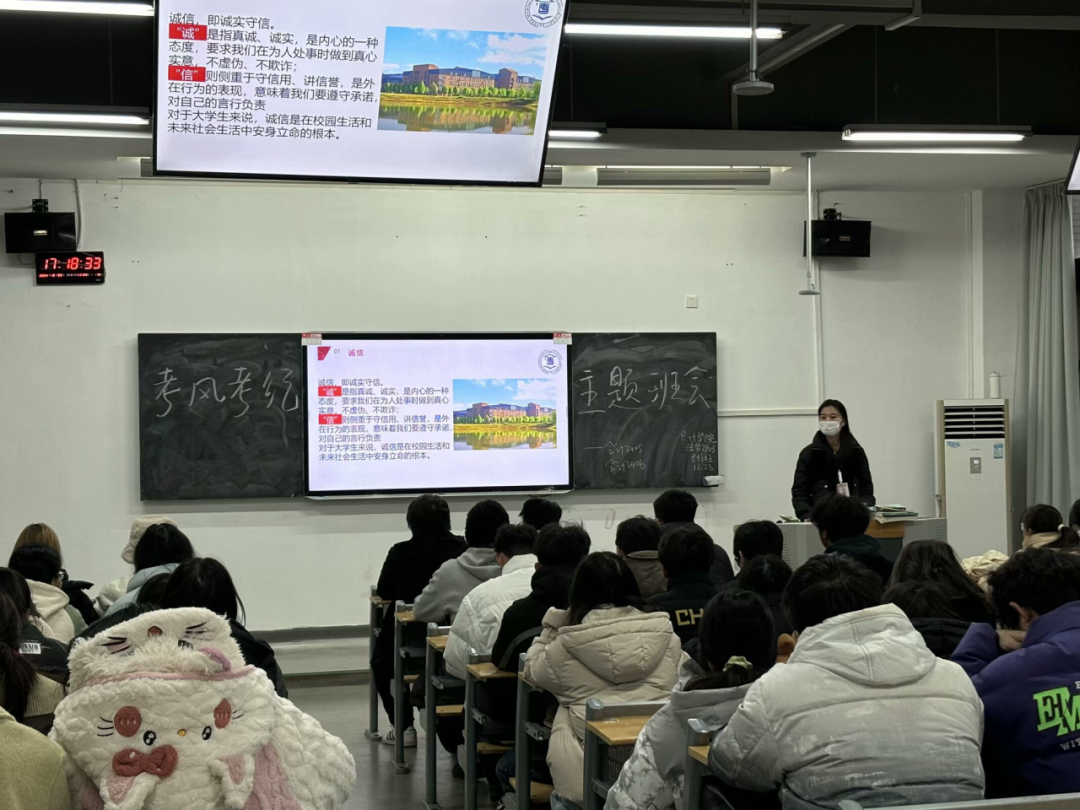 诚信,自古以来便是中华民族传承赓续的精神脊梁,是我们为人处世、安身立命的根本准则。临近期末,为进一步增强同学们的诚信意识,树立良好的考风考纪,2024年12月23日至25日,球友会第七届党员学长团队在各班级组织开展了诚信期末考试主题班会活动。本次活动旨在引导员工树立诚信意识,遵守考试纪律,以积极的态度和真实的水平迎接期末考试。