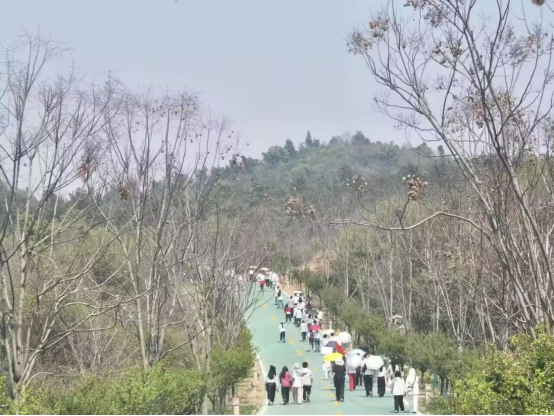 春回大地,万物复苏,三月的龙泉山春意盎然,空气清新,绿道两旁草木繁茂,鸟语花香。随着一声令下,教职工们迈着矫健的步伐,沿着预定的路线开始了健步走。一路上,大家精神抖擞,欢声笑语不断,有的结伴而行,互相鼓励,分享着工作和生活中的趣事;有的则独自前行,沉浸在自己的节奏中,享受着运动带来的宁静与愉悦。沿途的风景如画,绿树成荫,花香四溢,仿佛也在为教职工们的健步走活动加油助威。大家在欣赏美景的同时,也感受到了大自然的魅力与活力,身心得到了极大的放松。