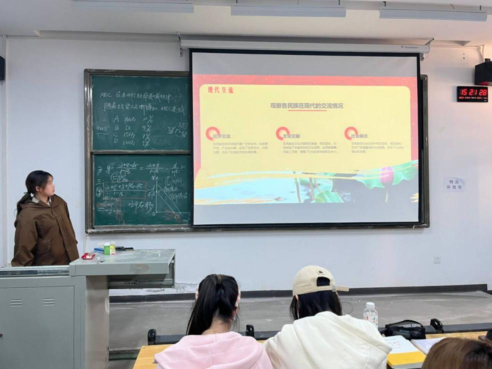 与此同时,24级智会、会计的同学们在老师的带领下,以一段展现各民族风土人情的视频拉开序幕,从蒙古族的那达慕大会到傣族的泼水节,同学们的目光被屏幕中各具特色的民族文化深深吸引。随后,一场热烈的讨论展开,同学们踊跃发言,分享自己所了解的民族故事。