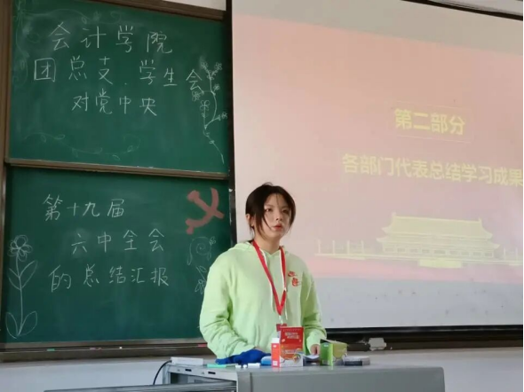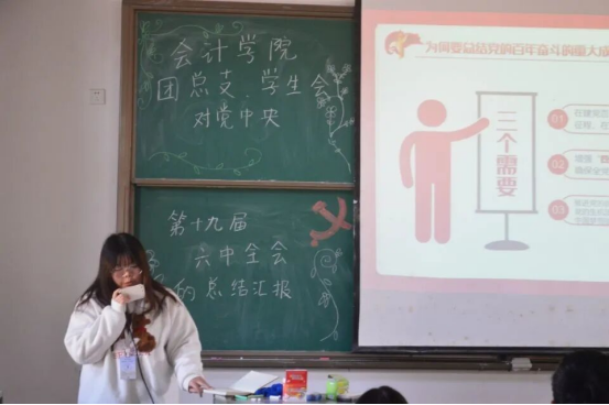 其次,各个部门选出了代表对党的第十九届六中全会内容的学习成果进行总结。