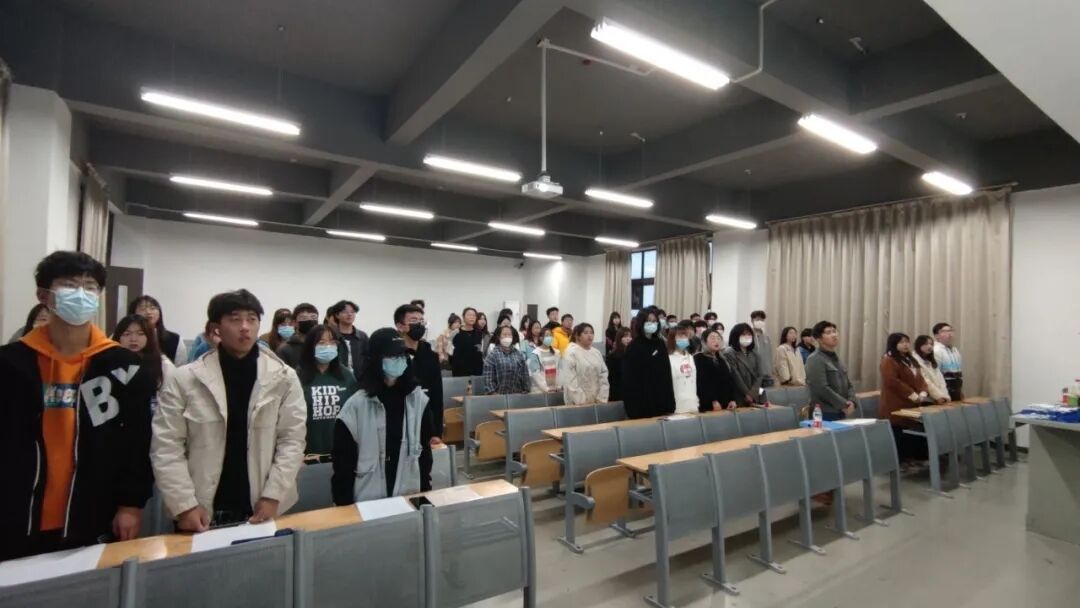 首先,主持人沈沧灏学长向大家介绍了本次活动的基本内容,并宣布大会正式开始。接着全体起立奏唱国歌和团歌。