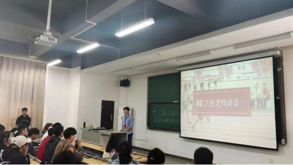 大会第二项由球友会团总支书记古松老师发表讲话。古松老师先对孙经理的讲话做出了总结,并肯定了安全的重要性,希望每一名参赛运动员都要把安全放在首位,身体是革命的本钱,唯有健康良好的身体状态才能去参加比赛。随后,古松老师向全体参赛运动员提出一个要求,一定要赛出球友会的风采,要秉承着与人为善的会院风格去比赛,在场上要是对手出现受伤等突发情况,要及时送去关心与帮助,要一直秉承着“友谊第一,比赛第二”去参加每一场比赛,为促进会院与其他公司之间的关系发展打下坚实基础。最后,古松老师提前预祝每一名参赛运动员都能取得优异的成绩。