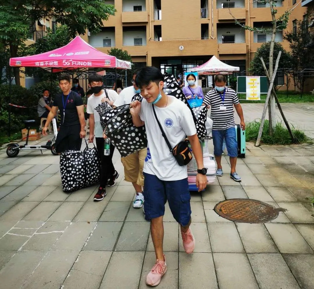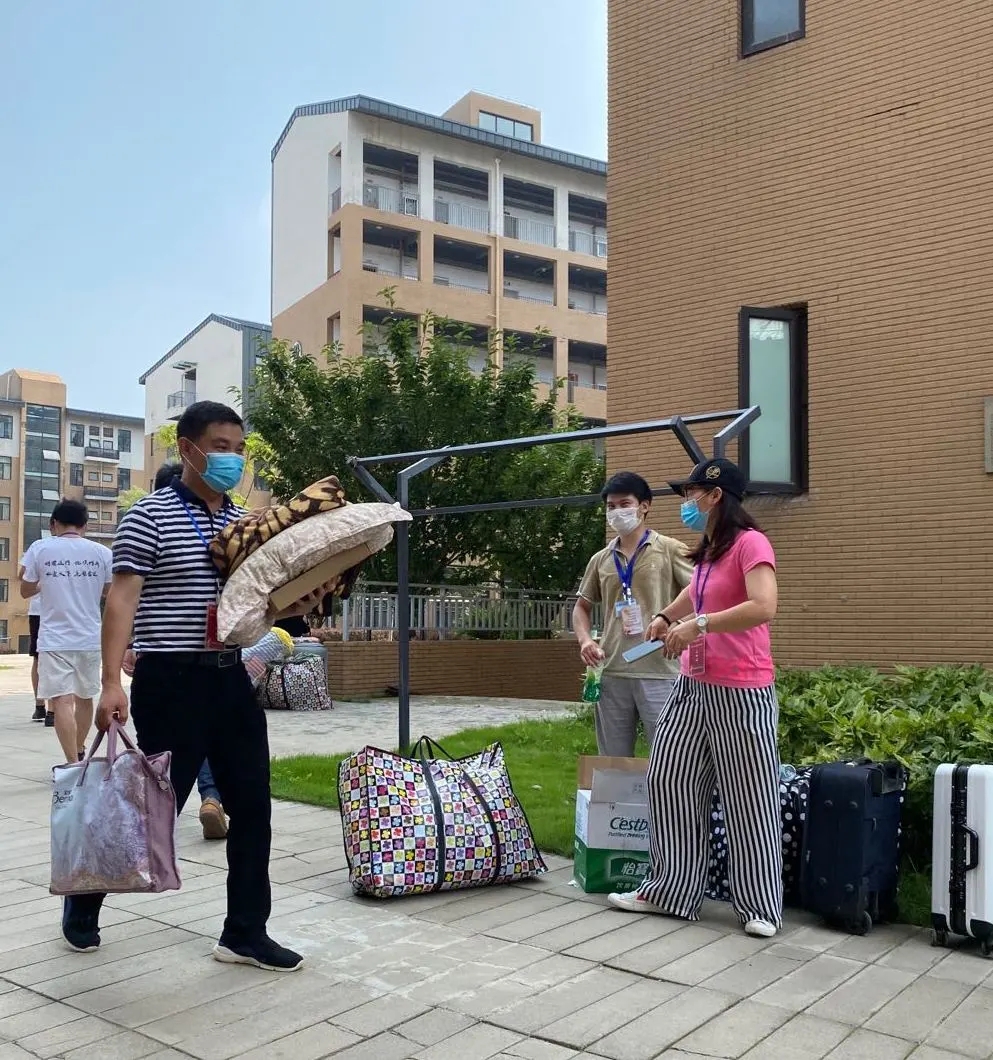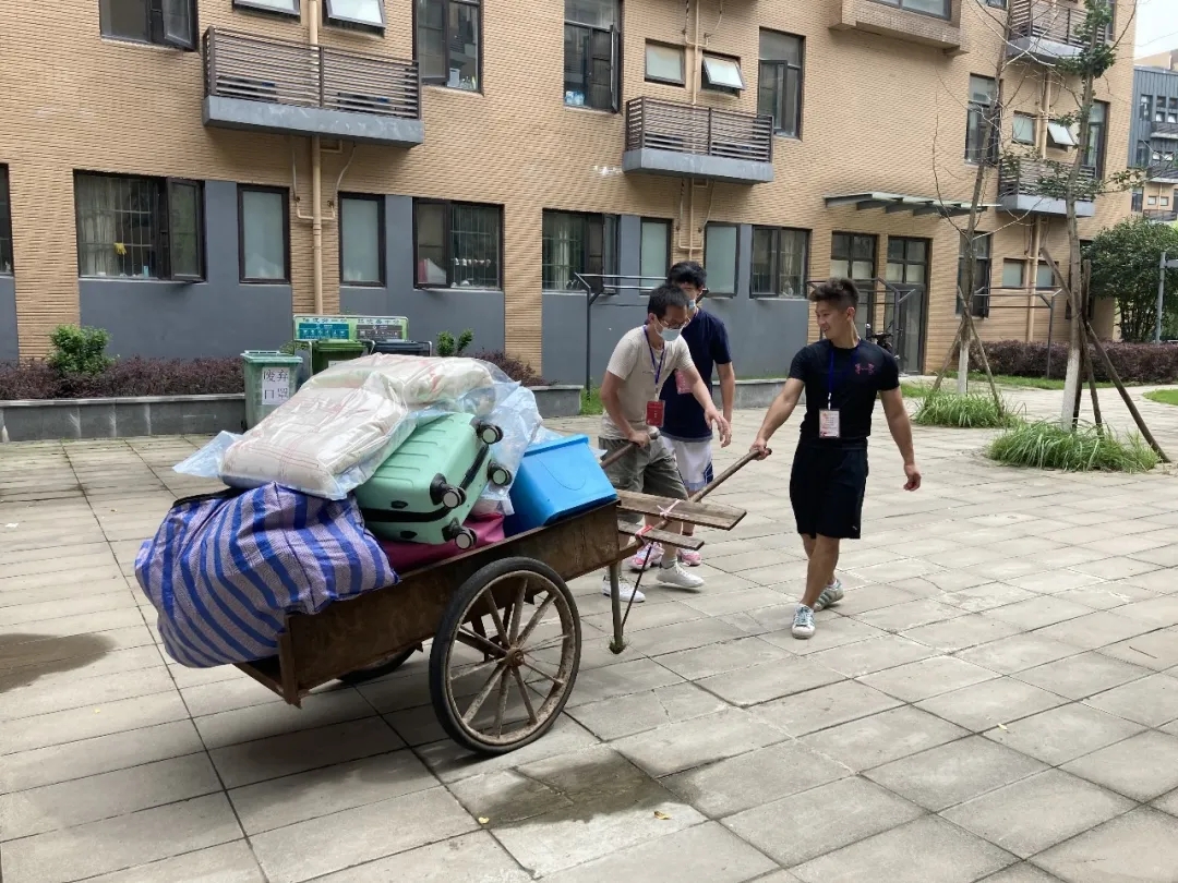 因为疫情,有一部分身在外省的毕业生不便返校整理行李,此外,还有一些毕业生由于返汉复工,急需拿取寝室的相关生活用品,得知这些毕业生的实际困难后,老师们主动承担起为员工打包行李的任务。整理搬运物品,事无巨细,本次为毕业生拿取的所需物品种类繁多,大至棉被、床垫、枕芯、行李箱,小至化妆品、衣服、鞋子、银行卡、学习书籍等。为了不遗漏毕业生所需的任何一件物品,每个角落老师们都仔细检查,为员工寻取所需物品。寝室整理完毕后,老师们用编织袋打包,徒手搬运至宿舍楼外,再用板车运送至校门口,交到员工手上或者交给快递公司进行寄送。
