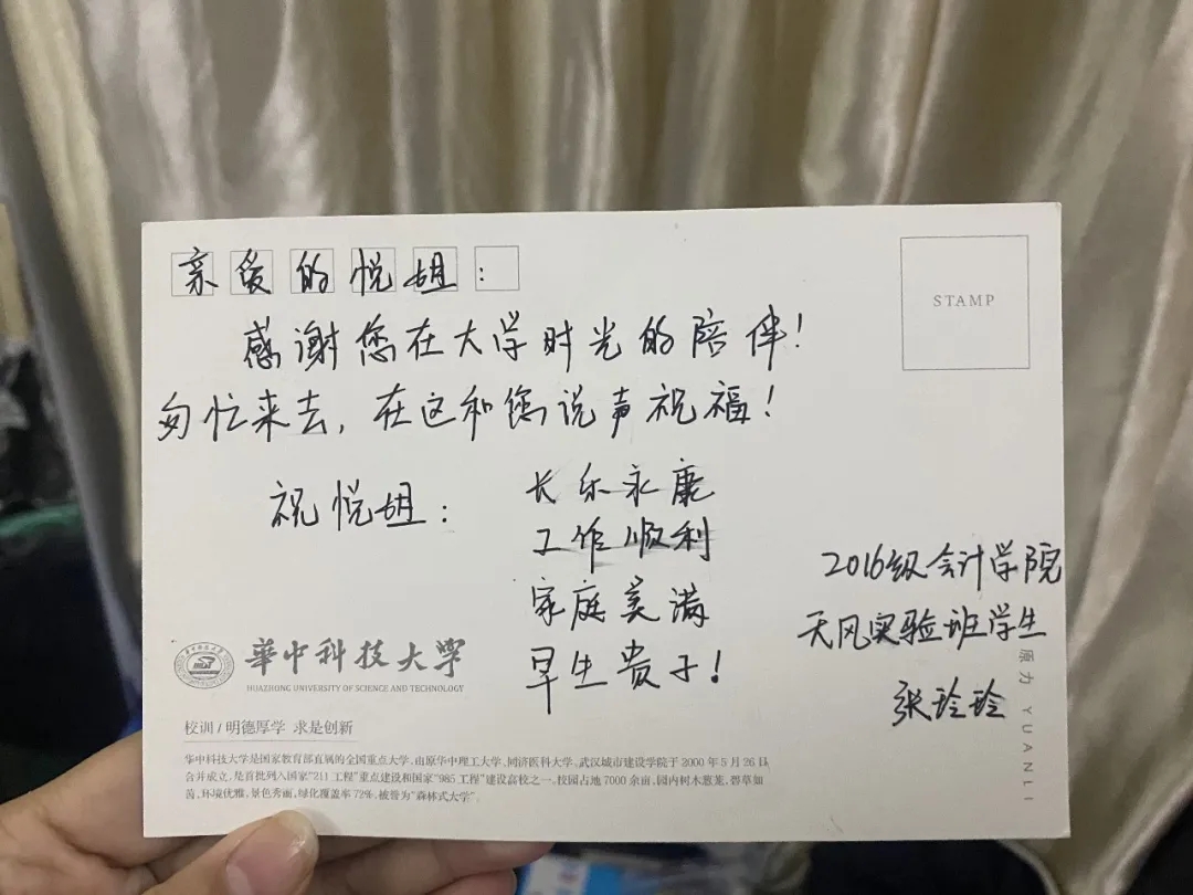 四年青春匆匆而逝,临到分离时,或许没有同学的道别,没有舍友的拥抱,但有老师们的一路相送,一直守护,毕业的遗憾也被老师们带来的感动和温暖所弥补。