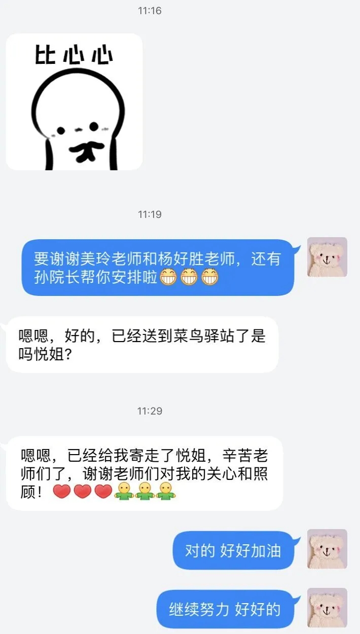 老师们的这些举动让毕业生们倍感温暖,毕业生们也发来了信息,感谢他们所做的一切。老师们寄出的不仅仅是一份份包裹,更是他们的关爱和期望。