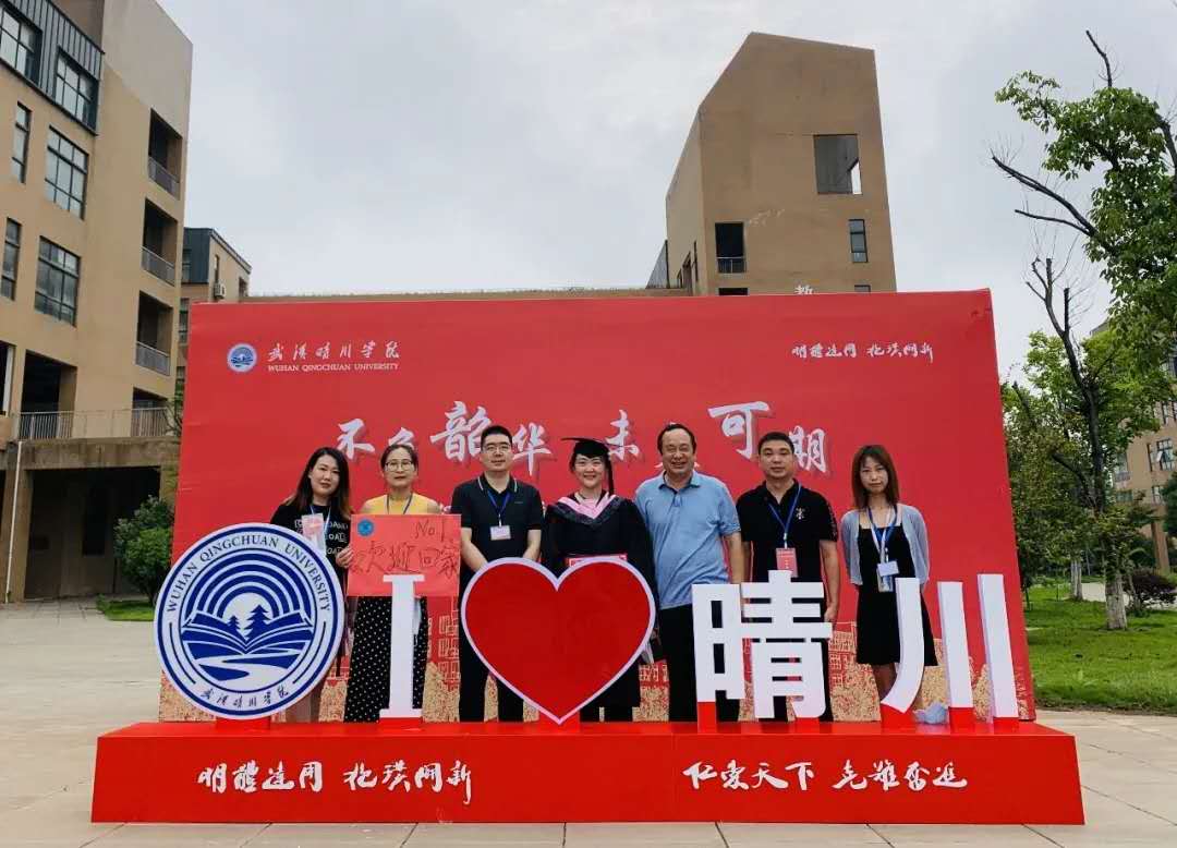 常务副董事长许建国、副董事长向巍、公司党总支书记孙建伟、副经理李勇及辅导员老师与毕业生吴淑芬合影留念
