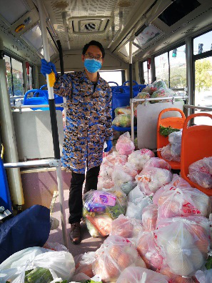 2月25号,郭庆老师又在社区(武汉市蔡甸经济开发区海天社区)里登记报名,主要负责社区每次团购菜品的上货、下货、分发。25号至今一直在做志愿工作。