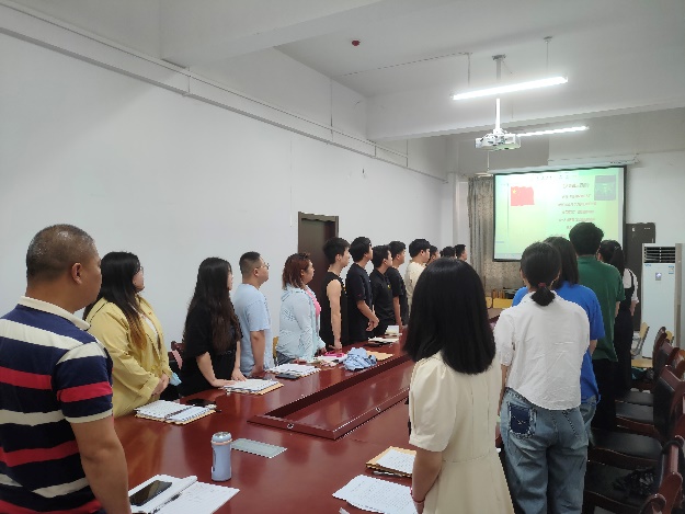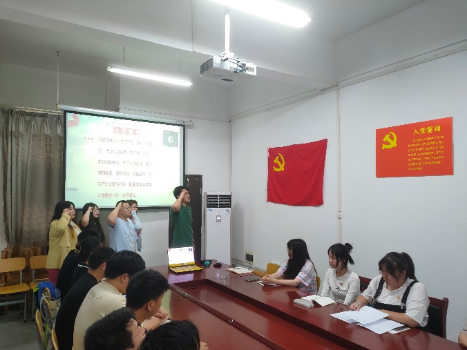 在全体齐唱国歌后开始了本次活动的第一部分,由五名即将转正的预备党员进行思想汇报,大家纷纷谈到自己这一年的预备期中,在思想学习及生活工作上的提高,同时也总结了自身问题及今后的改进方式。其中万召祥同志谈到在组织的培养教育下,他不断加强政治思想学习,对学习工作精益求精,特别是通过学习党章党纪和参加组织生活、党内活动,增强了理想信念与党性修养,同时自己在团结同学与学习扩展性上还存在不足,今后一定要多向其他同志学习并改进不足之处。
