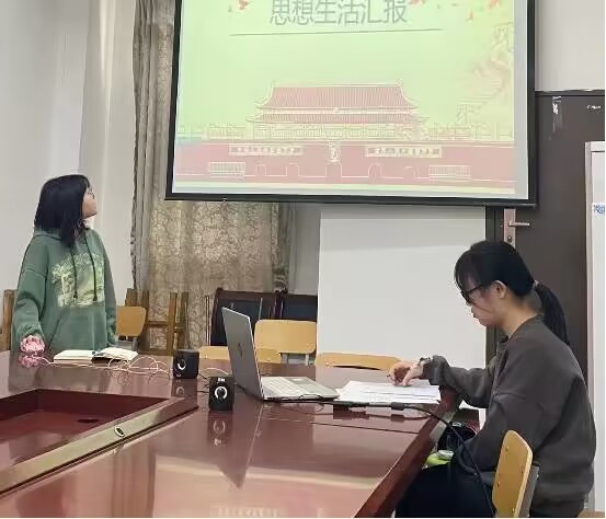 会议第二项,发展对象思想汇报。四名发展对象分别从个人履历,对党的认识,入党动机,未来规划等各方面分别进行汇报。