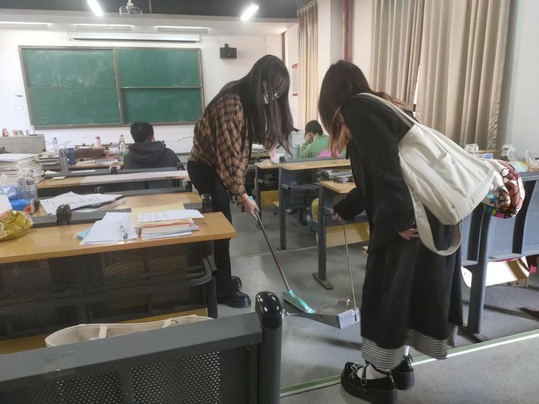 员工第二党支部的同学有序地进入考研自习室,分别按照各自小组的清扫任务有序进行打扫,大家动作轻盈,在不打扰考研同学的前提下,把每个角落打扫干干净净,为考研的同学们提供了干净舒适的学习环境。同时,各位同志们也都从这份工作中体会到了其包含的责任与意义。