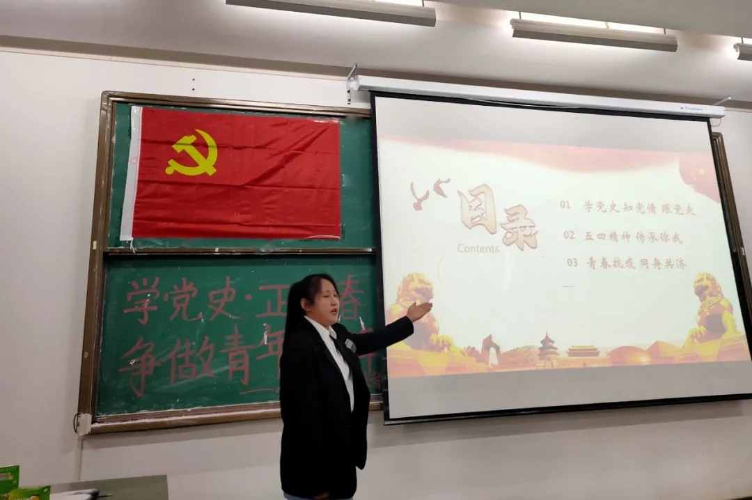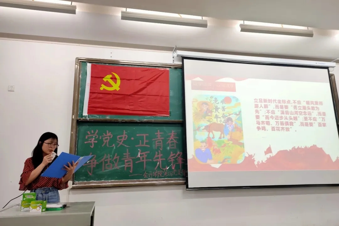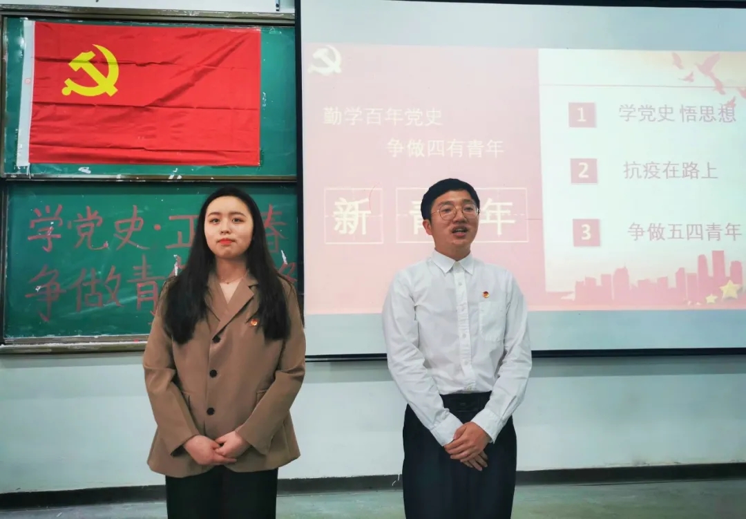 交流会在全体与会师生齐唱国歌中拉开帷幕。党总支书记孙建伟首先对学党史活动提出希望:第一,希望大家学习党的百年光辉历程中的历史故事,进一步坚定理想信念;第二,学习党的百年奋斗中的伟大精神,带动和影响青年永远跟党走;第三,发挥党员引领和带头作用,用行动向党组织靠拢,实现入党的誓言和初心。他还寄语同学们“奋斗新时代,青春正当时”。