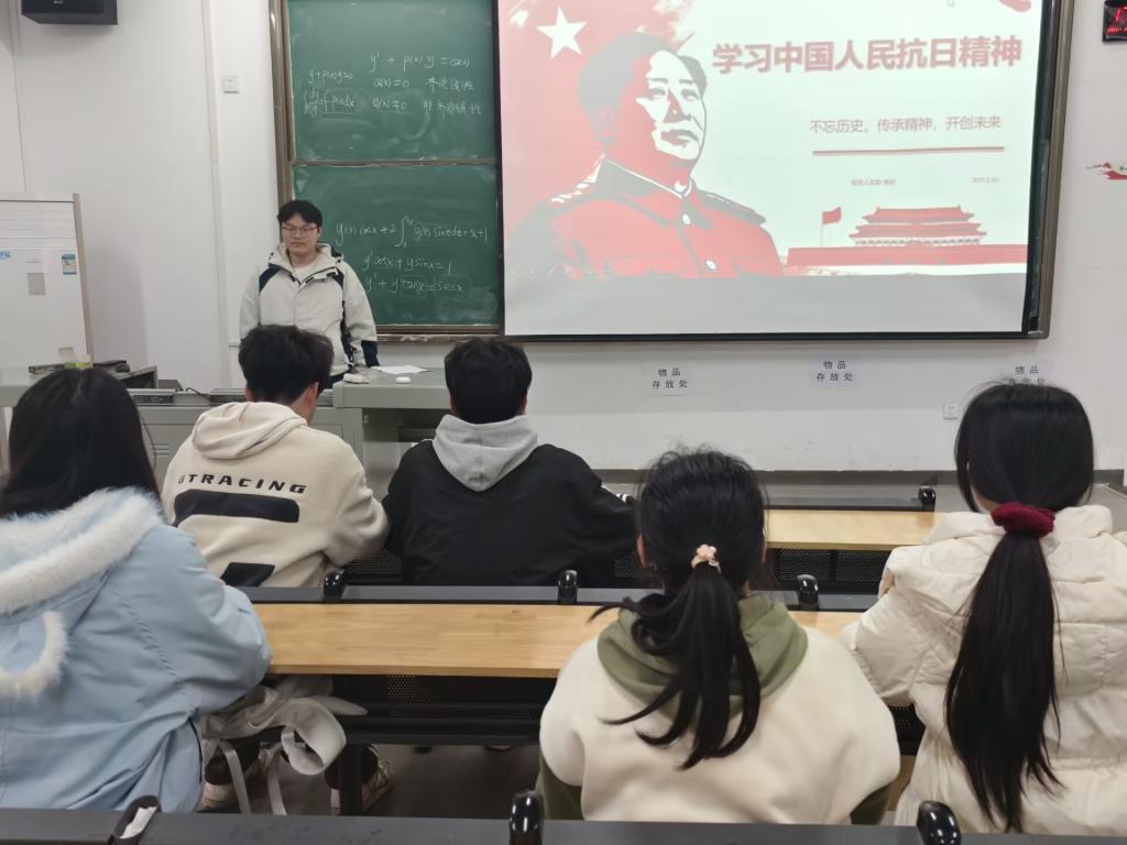 班会的最后班长还呼吁同学们在日常生活中积极践行志愿服务精神,参与社会公益活动,帮助身边需要帮助的人。同时也希望同学们能够铭记历史,传承抗日精神,勇敢面对生活中的困难和挑战,努力成为有担当、有责任感的新时代青年。